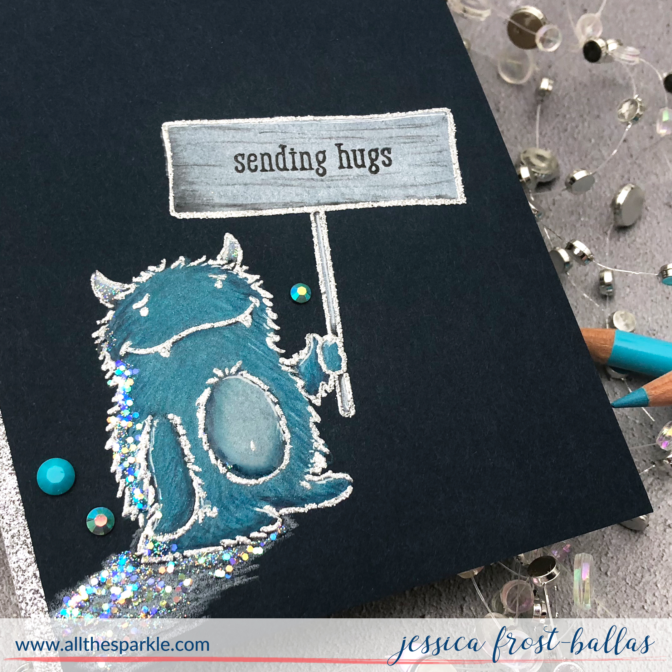 Such a sweet card Jess! Love the touch of silver glitter paper and the gorgeous colored pencil against that dark navy cardstock!