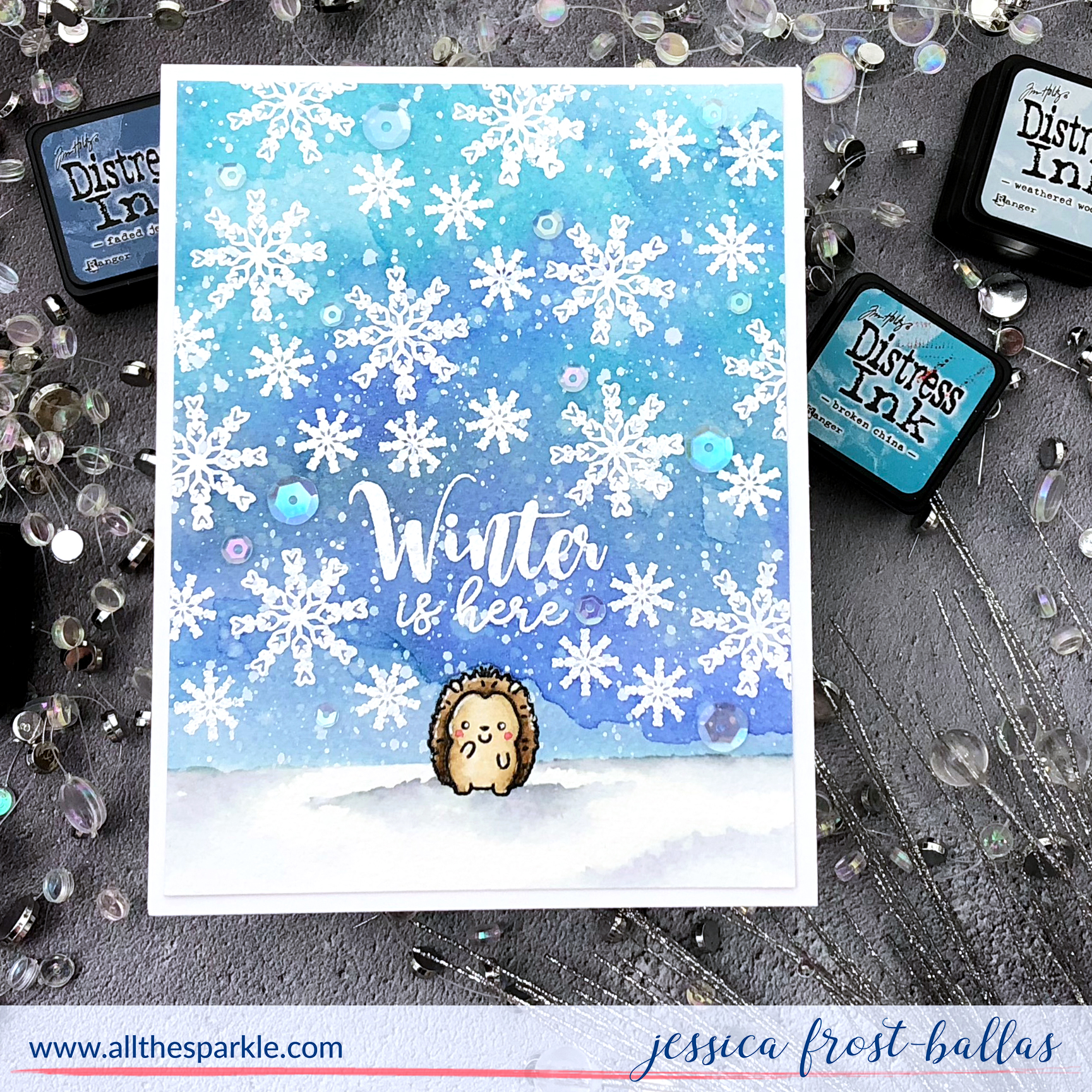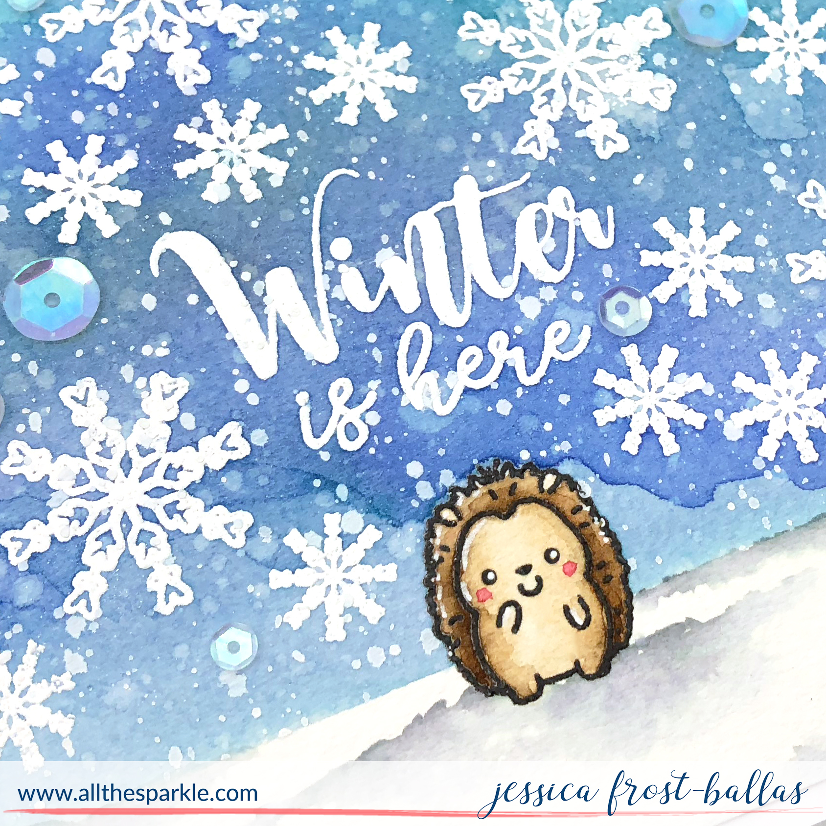 So adorable, Jess! I love hedgehogs & this card really shows him off. Love the snowy background