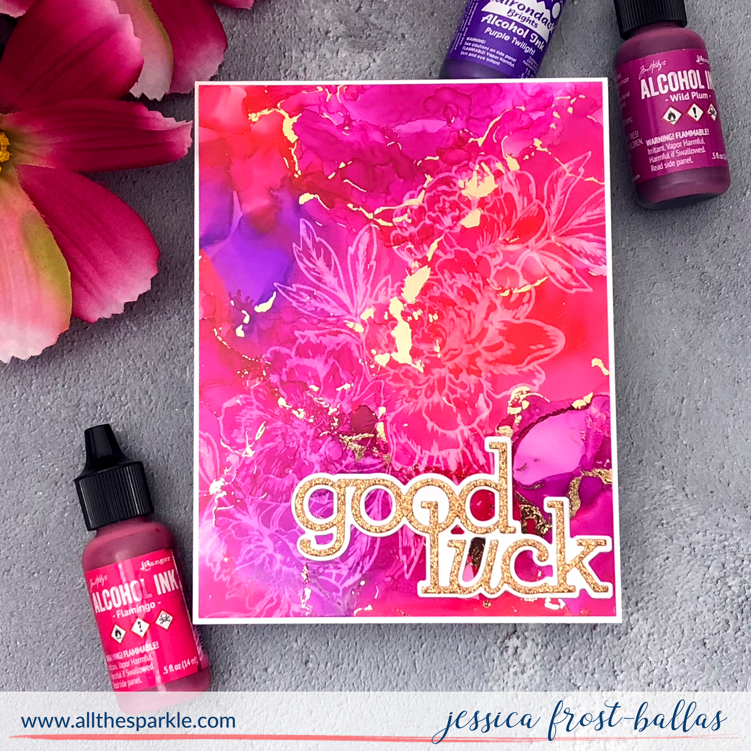 I love this Beautiful Flowers 2 stamp set. Such a beautiful cluster of flowers and love it on alcohol ink 🙂 Beautiful card!
