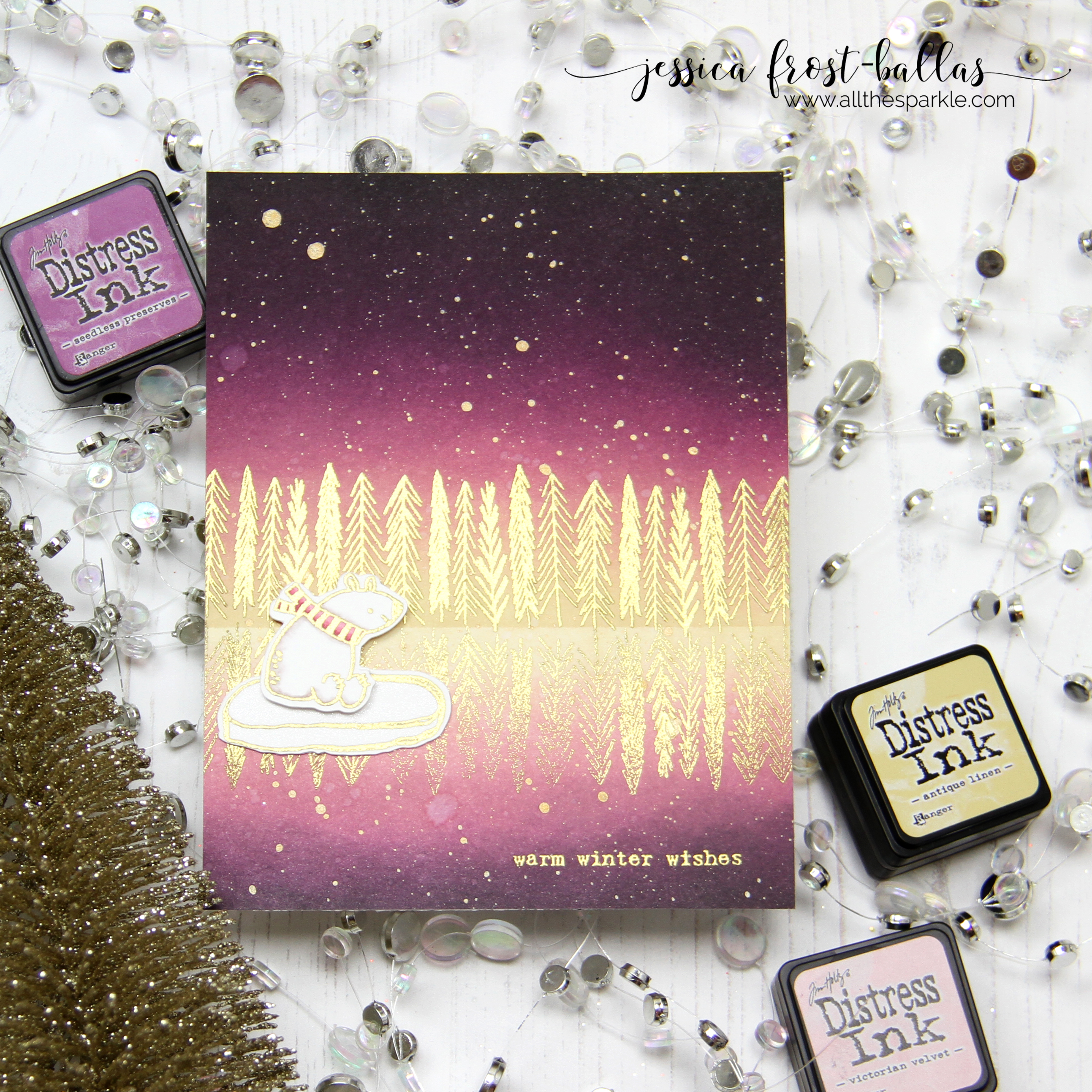 All of these are stunning, but there are 2 that really grabbed me and that was the polar bear with the gold trees and the reflection in the water (stunning) and then the mermaid tail. that background is beyond words beautiful. I also love the embossed gold fish in the last card. such awesome creativity. Happy New Year to you and yours.
