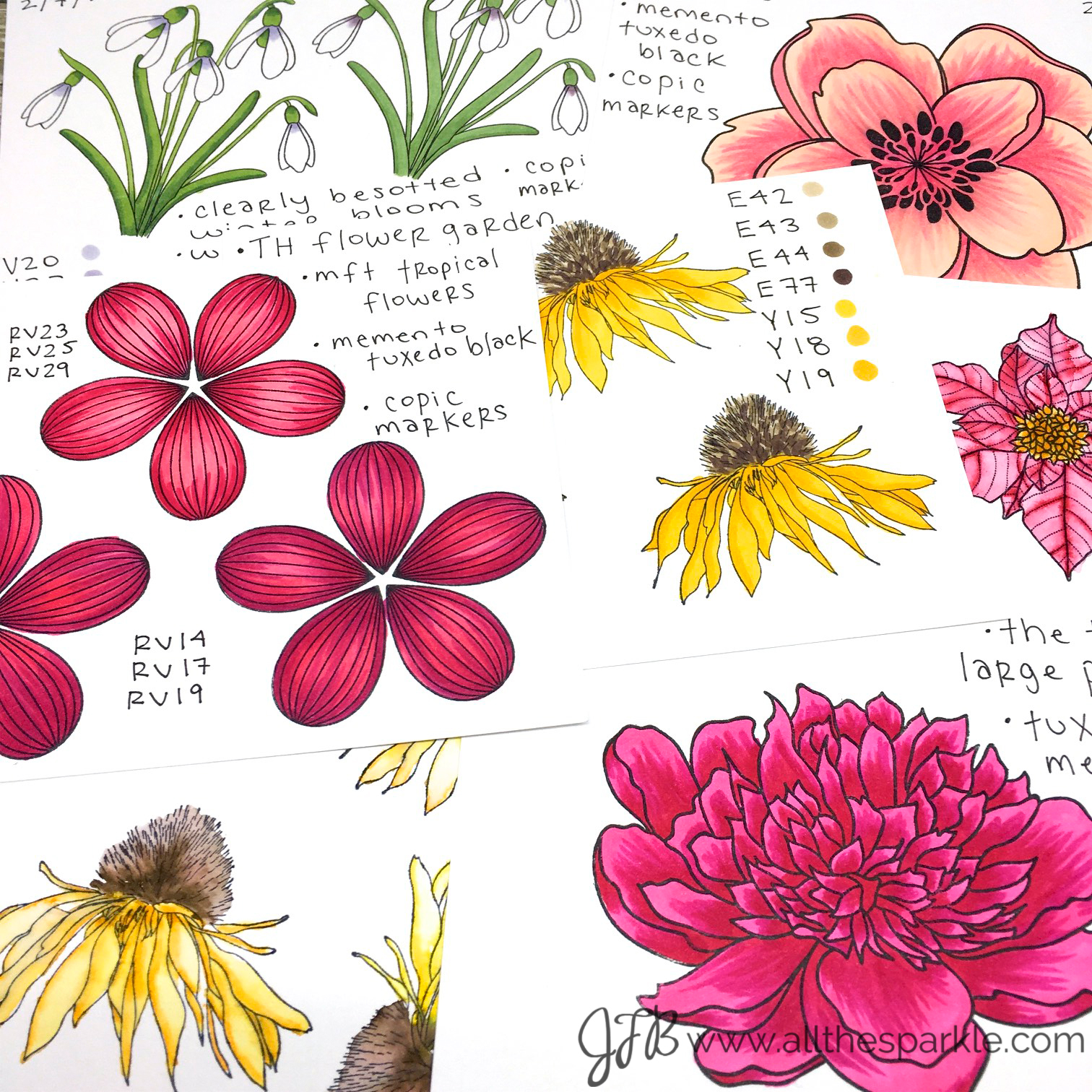Good morning! I’ve been participating in Kathy Racoosin’s 30 Day Coloring Challenge and sharing my daily coloring on instagram and facebook; however, I realized that some of my blog followers aren’t on IG or FB so I thought I’d share each week here as well! I’ve wanted to do the coloring challenges for awhile but could never keep up with it. This time I decided to be a little proactive and stamped floral images from various companies on white cardstock and watercolor paper in late January so that all I would need to do each day is pick an image and grab my coloring medium! At the end of the month I can run each panel through my Scan N Cut to cut out the images for future card-making!