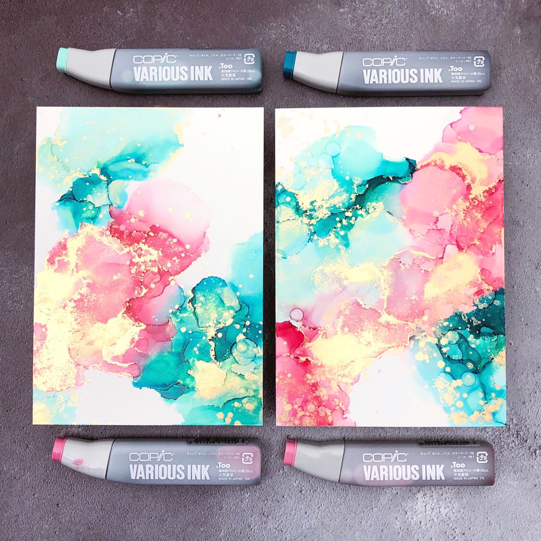 Here’s a few of the pieces I created using a combination of ranger alcohol inks, pinata metallic inks, alcohol pearls, and copic refills!