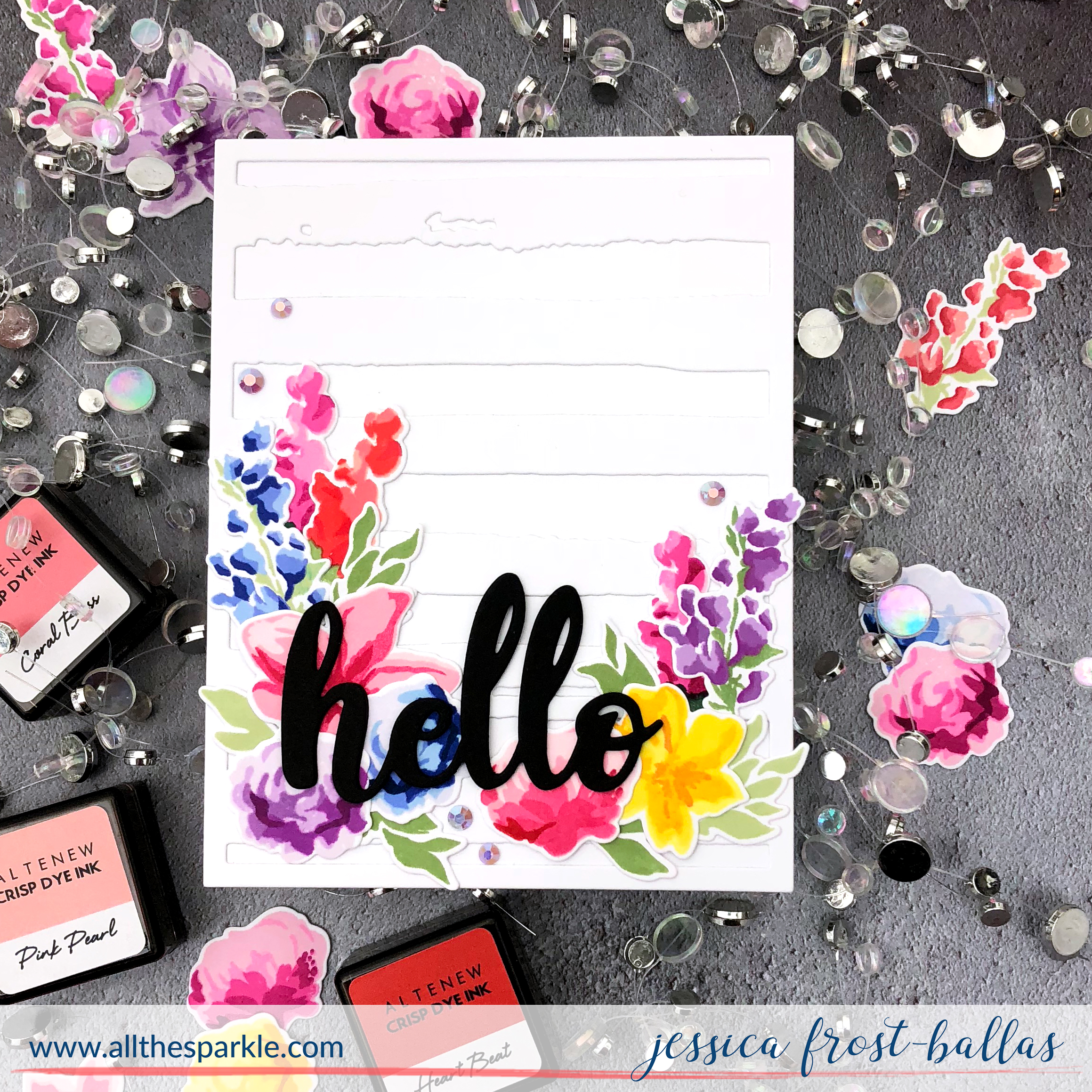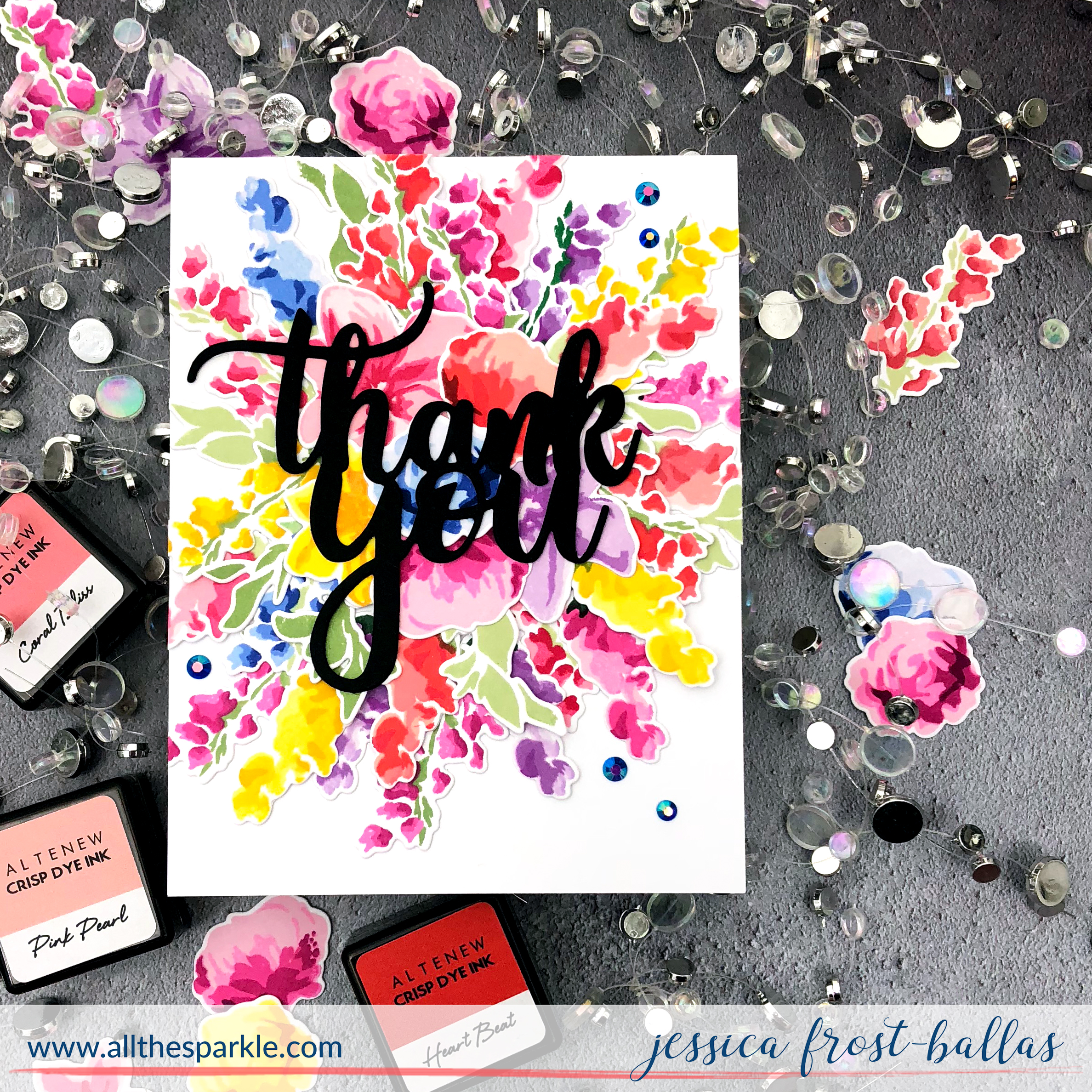 I fell head over heels for the Life is Awesome florals and used my MISTI to crank out a ton of layered flowers using the beautiful shades of Altenew inks!
