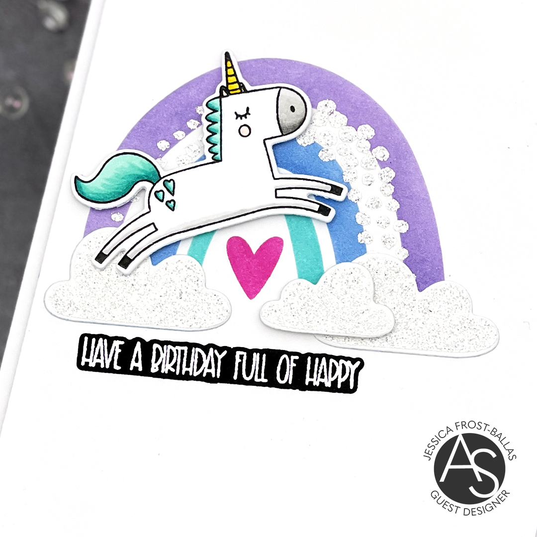 Love the rainbow and unicorn so much! Very sweet card with pretty colors and sparkle!