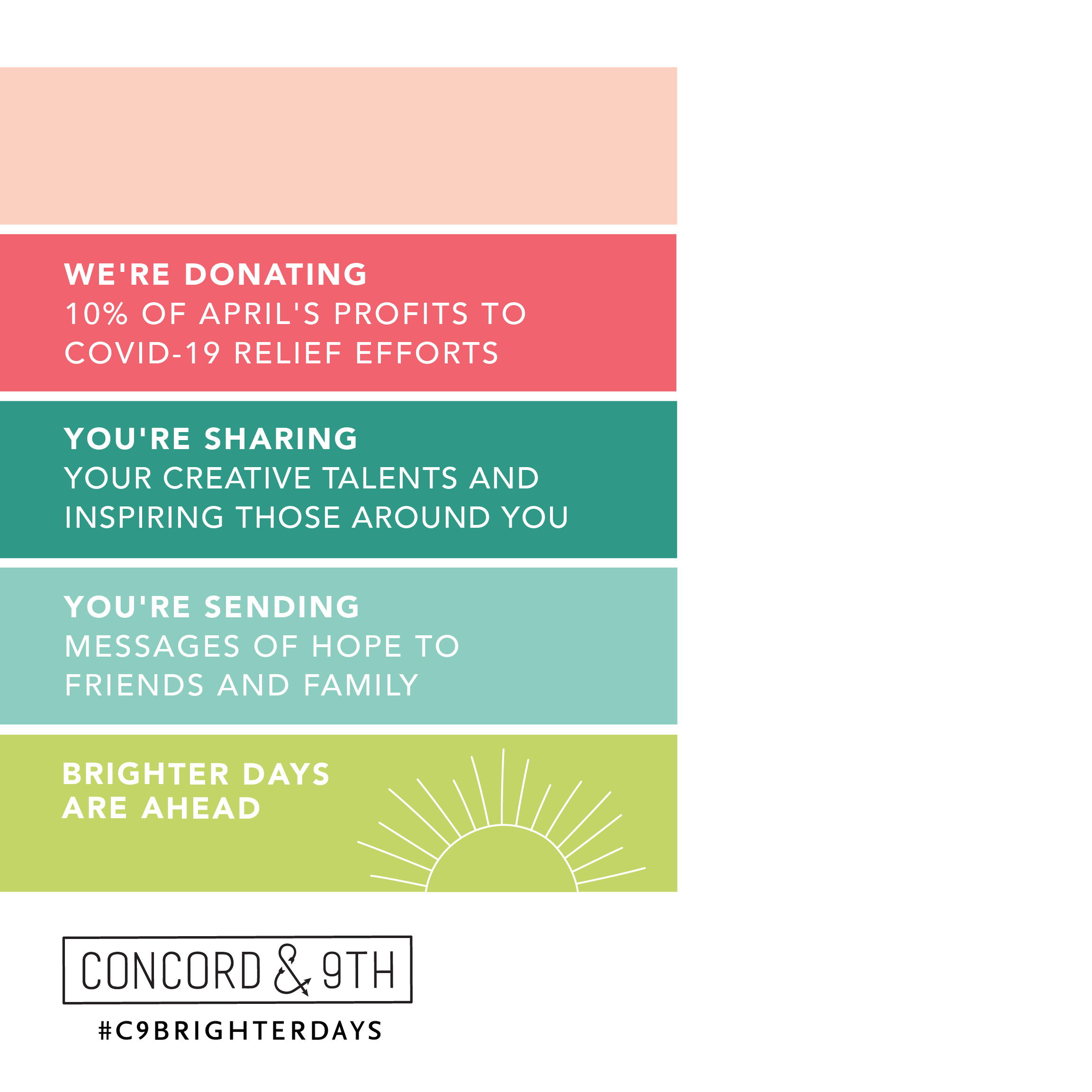 Good morning! Today I’m excited to share a card using the cheerful April release from Concord & 9th! Concord & 9th is also donating 10% of ALL April profits to Covid-19 relief efforts and will spend the month reminding us that Brighter Days are Ahead! 🙂