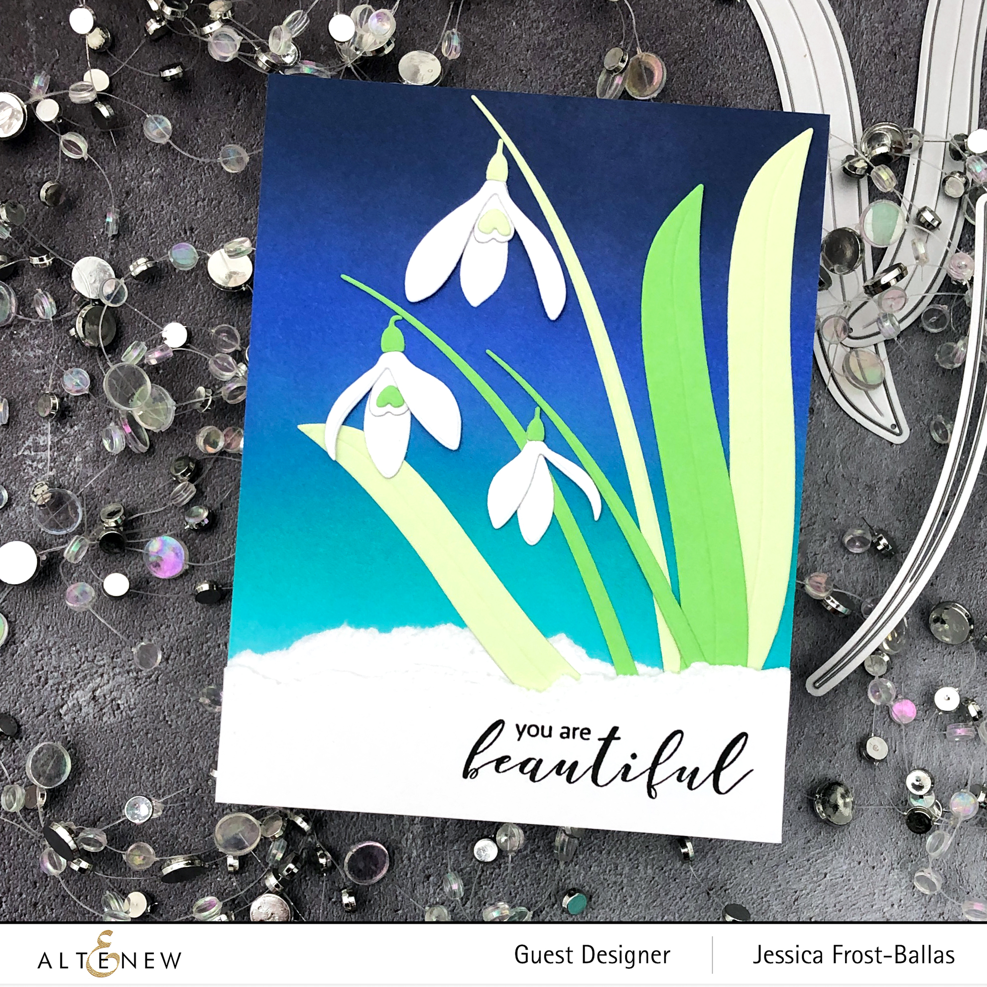 Good morning! I’m joining Altenew to celebrate the release of their newest Create-A-Flower and one of my all-time favorite flowers: Snowdrops! It’s been many years since they’ve actually come up in our garden when there was also snow on the ground but they’re one of my favorite ways to tell that spring is on the way!
