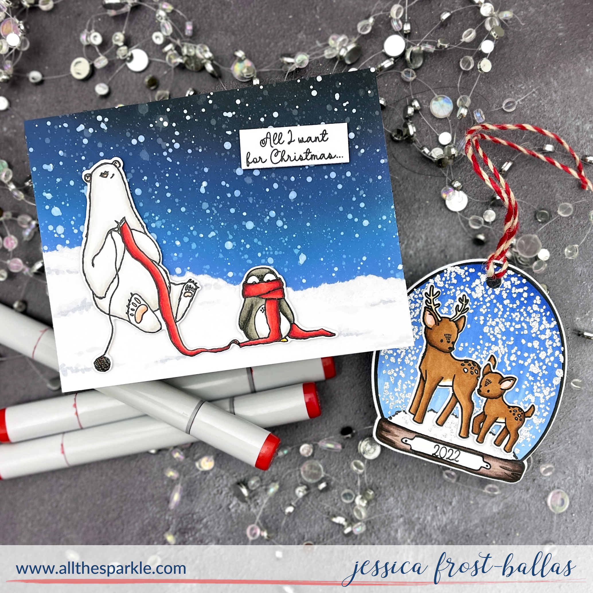 Jessica, what an adorable card and that tag is so cute and what a creative way to use the snow globe … another fabulous release and fabulous inspiration