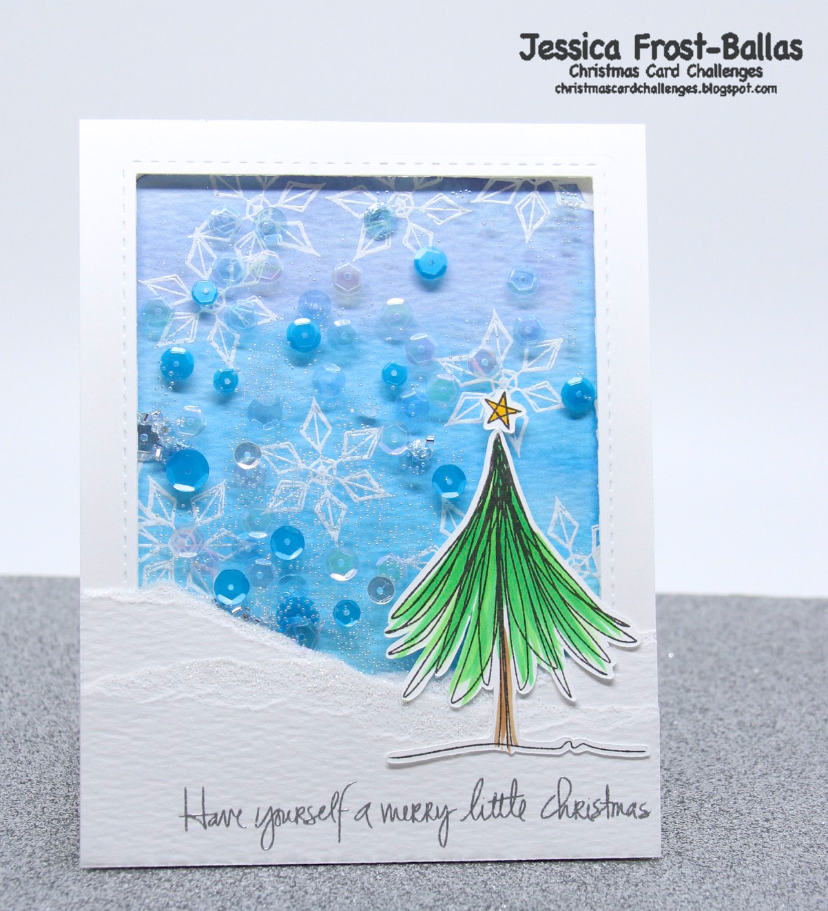 Hey Jess, yay shaker, lol! Love the background colors, the ripped paper for the snowy hills and the cute little tree. TFSAI.