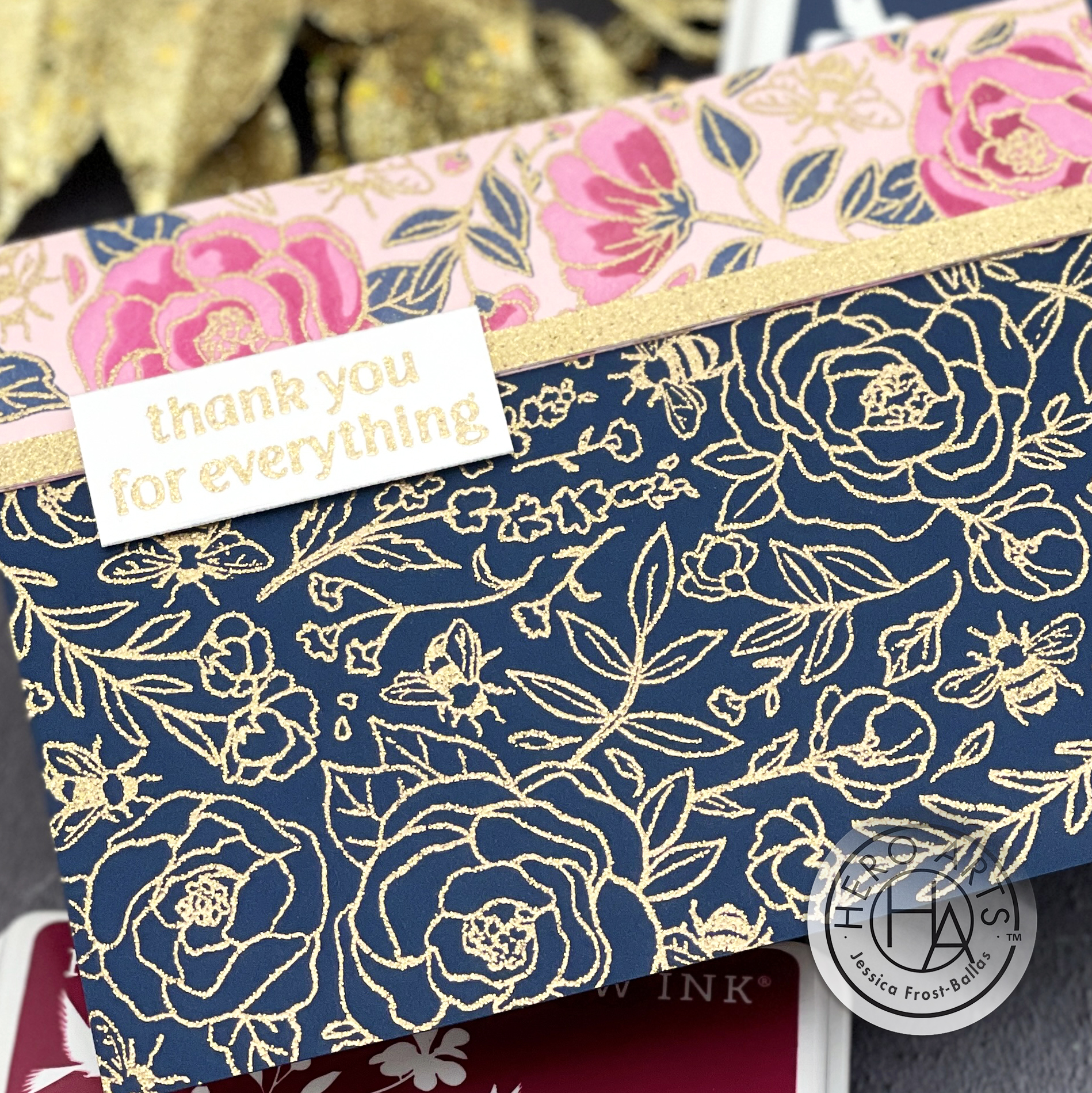 Love how you used gold embossing in two ways. The gold on navy is stunning!