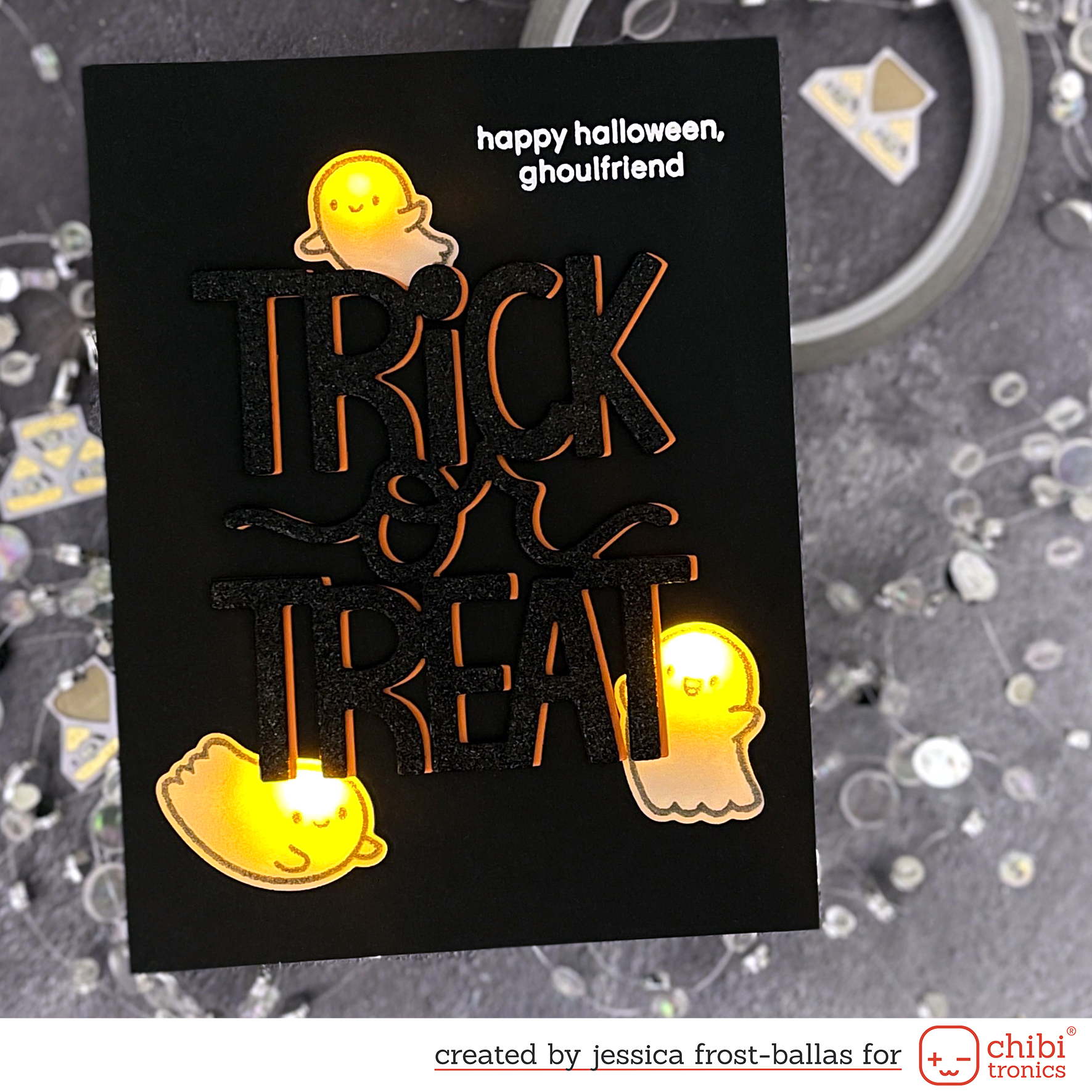 Good morning and Happy Halloween! Today I’m popping in to share a fun light-up Halloween card using the Chibitronics Craft With Light kit and Heffy Doodle stamps! Chibitronics is now proudly carrying some select stamps and dies from some of our favorite companies that work particularly well with Chibitronics lights! You can find those products HERE and to celebrate the new additions to the shop we’re offering 10% off all products in the Craft category!