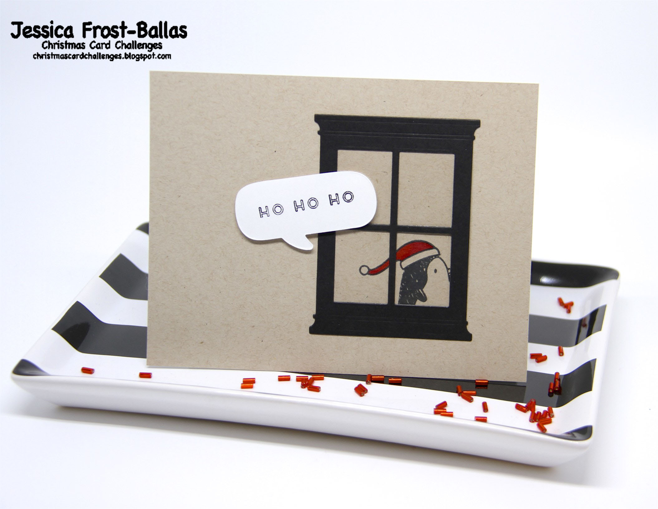 I’ll admit that I was really stumped at first…I wasn’t sure how to incorporate Santa into a kraft and black color scheme (especially since I don’t own any Santa stamps)….but I think I made it work! 😉