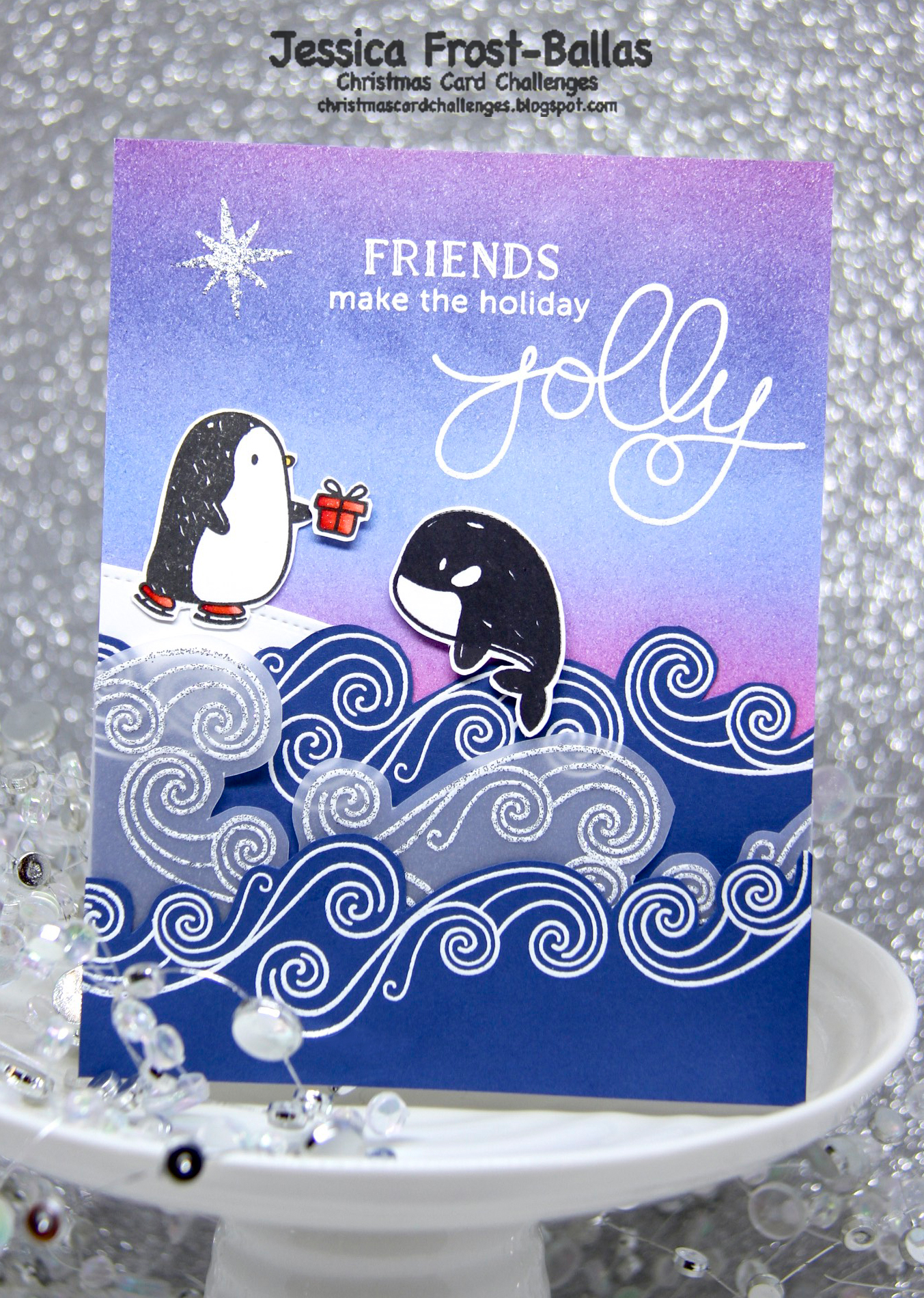 Hi Jess, a very cute card love the waves and the cute penguin with the orca, what a shame that one is a food source for the other down here in the south… have a great week… Megan