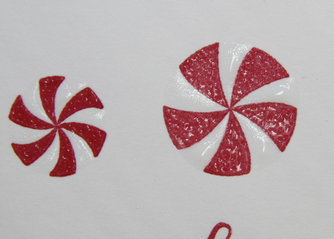 Once the white glaze was dry I mounted the panel to a piece of candy cane-striped patterned paper and adhered it to a top-folding white card base.