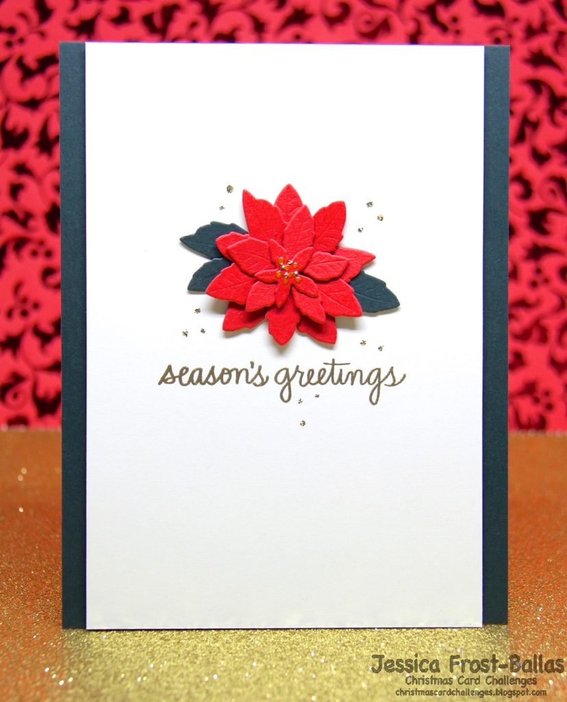 I was going through my stamps this week and realized that I’ve owned that Poinsettia Parade die from Simon Says Stamp since last Christmas but never used it! So I decided to layer the poinsettia for a fuller look but kept the card fairly CAS (I know, I know…that never happens!) 😉
