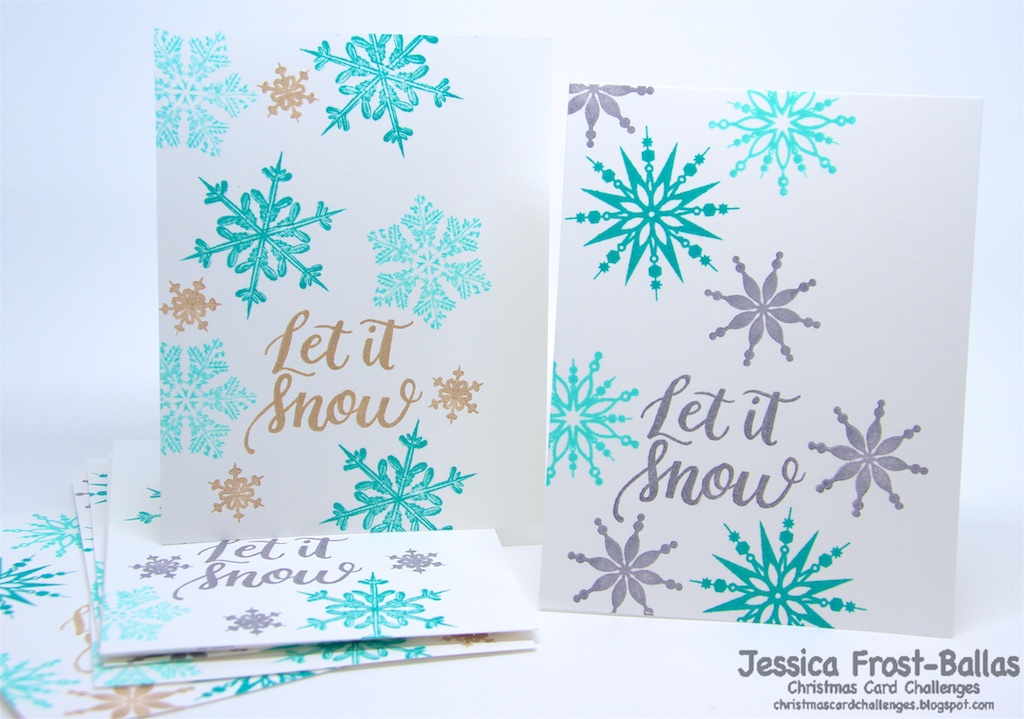 I always love seeing holiday cards in nontraditional colors and these snowflake beauties are awesome! These would be wonderful thank you cards for Christmas gifts!
