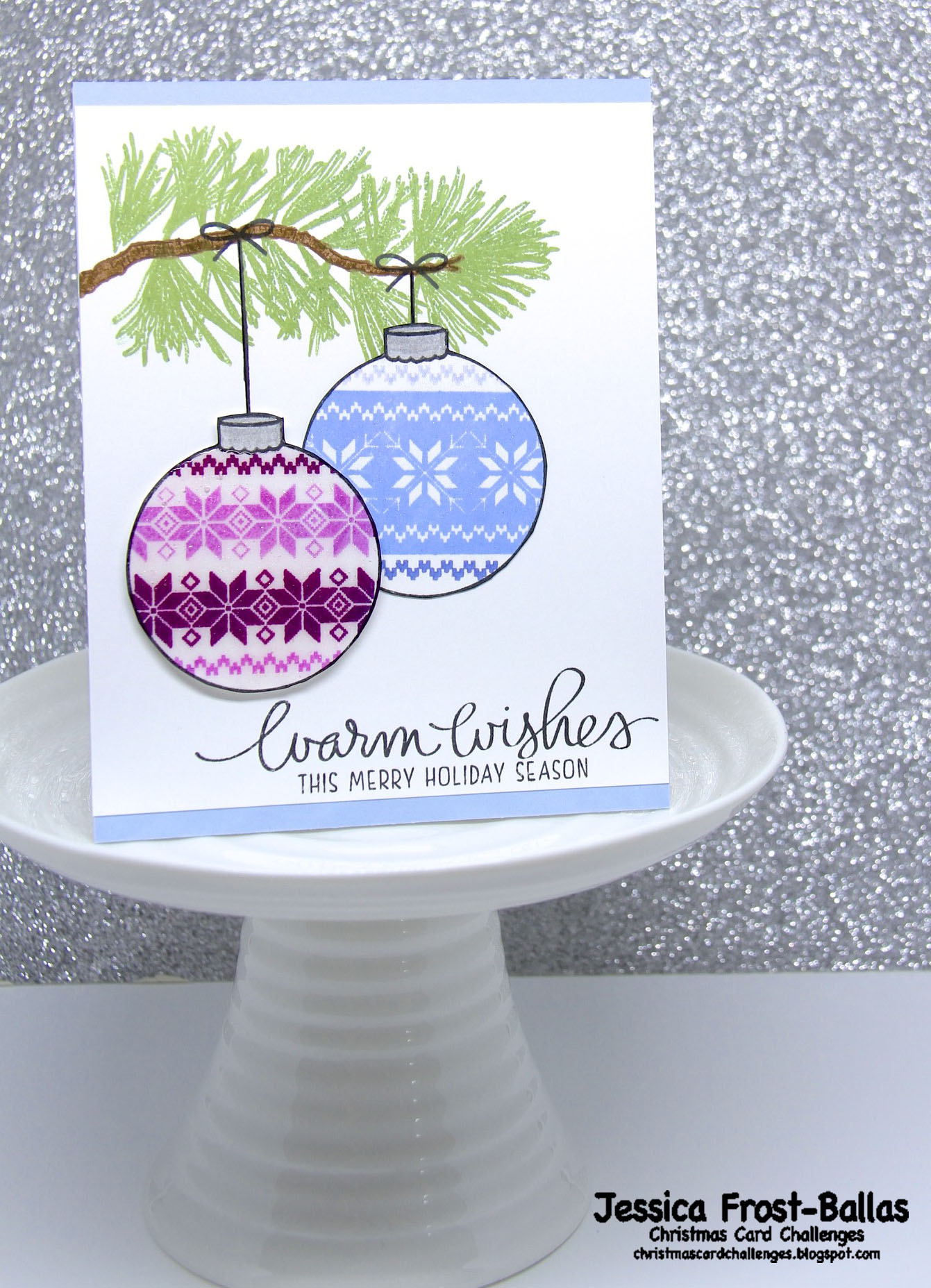 Jessica, this card is amazing! Love those awesome ornaments!