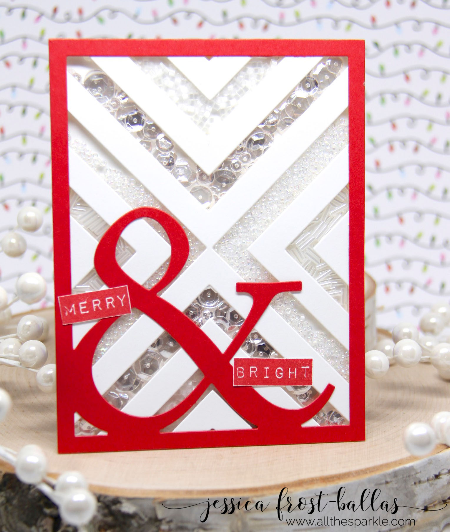 Pretty card! I love the sequins and beads in this shaker card! Looks great with the red All About Ampersand die to frame it!