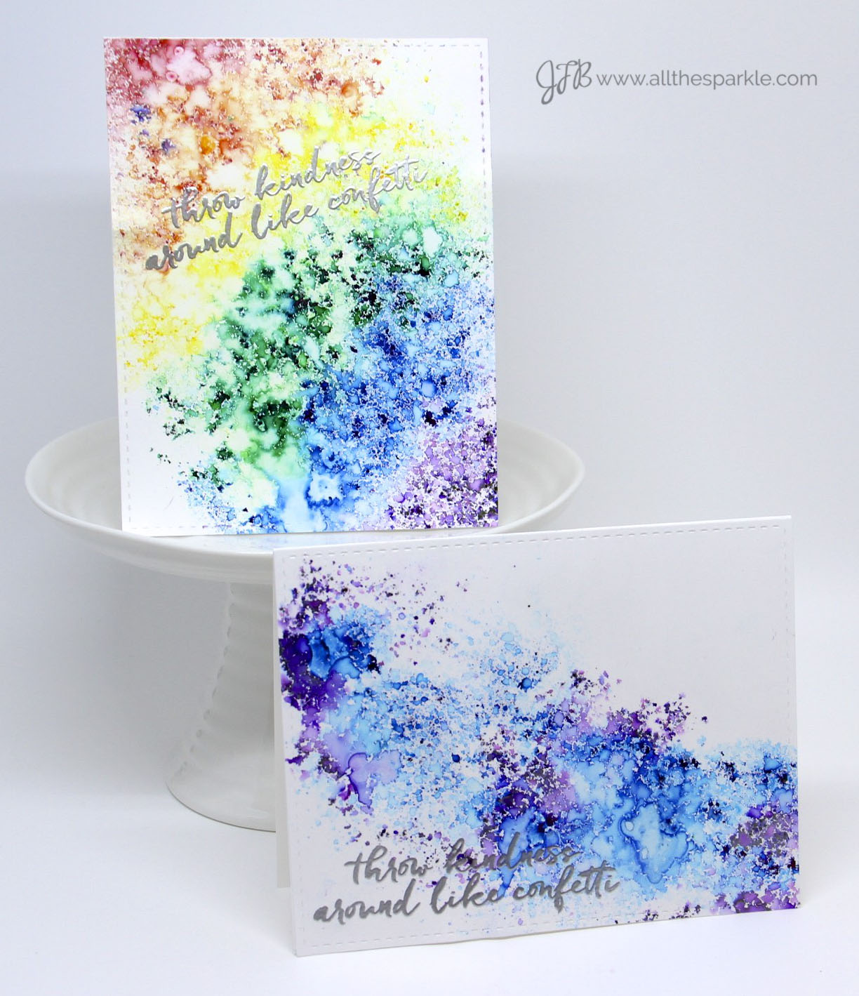 First of all…Congratulations on becoming a CLC Design Team member. And these cards are gorgeous and so colorful…you make splattering paint so pretty.