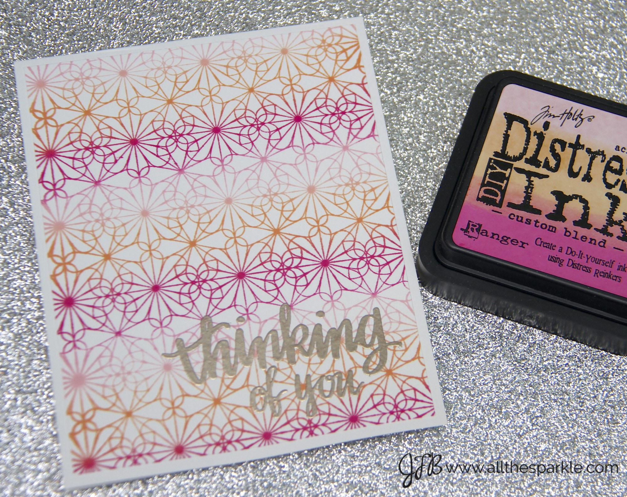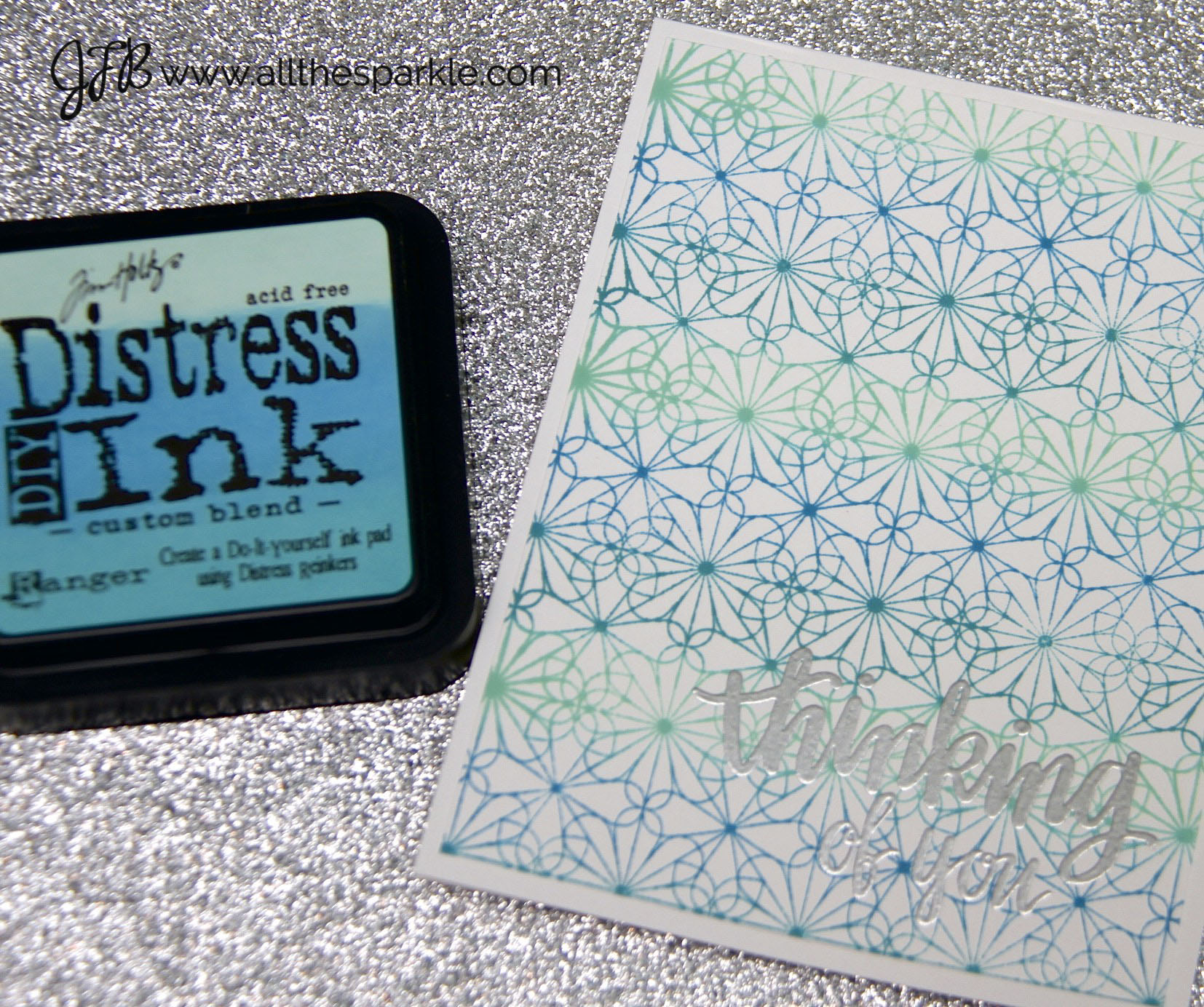 My very favorite distress ink combination is Spun Sugar, Dried Marigold, and Picked Raspberry. The lighter shades blend to a beautiful peachy shade and the darker shades blend to a gorgeous deep pink. And my 2 am inspiration was Cracked Pistachio, Mermaid Lagoon, and Peacock Feathers! Here’s how they turned out!