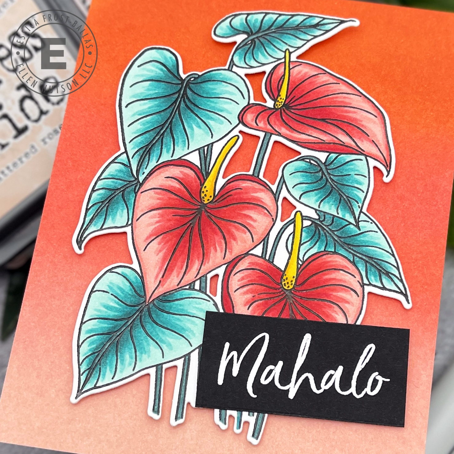 Happy Monday! We’re continuing the Summer of Stamping over at Ellen Hutson with a brand new Essentials by Ellen release!! This release is all things tropical, hot, and summery and features a brand new mondo flower: Mondo Anthurium which I’m featuring in my card today! I’ll also have links to the full release below!