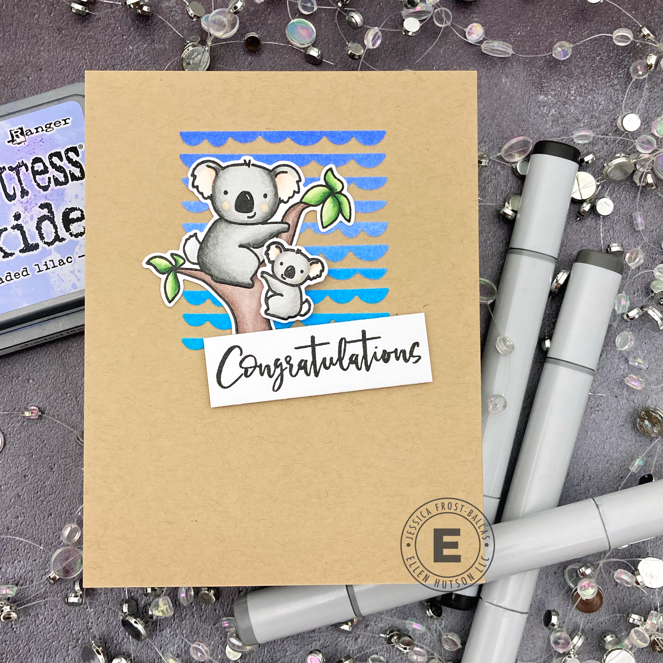 Jess, this card is too sweet! Love those adorable koalas and that fun background you created!