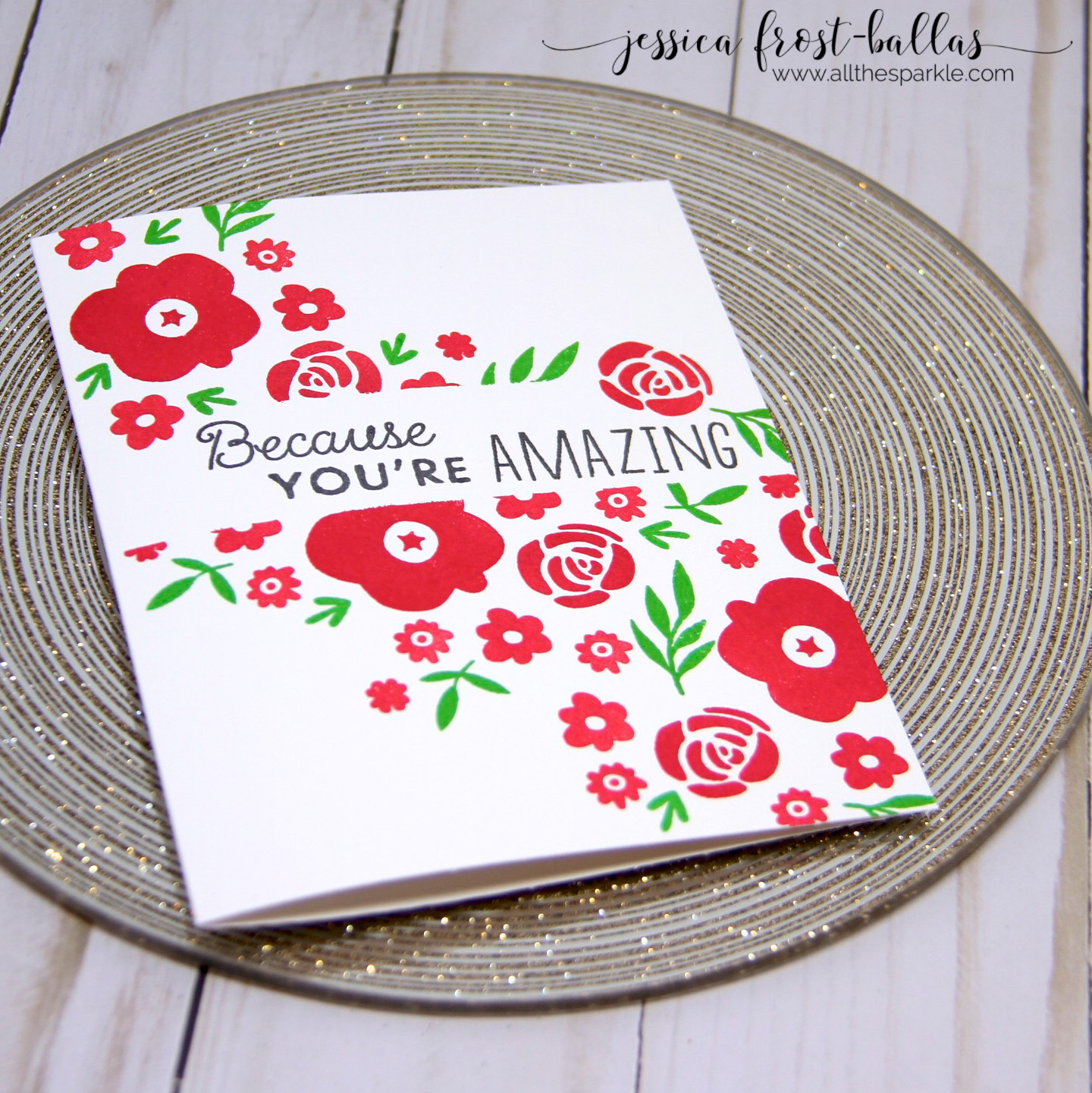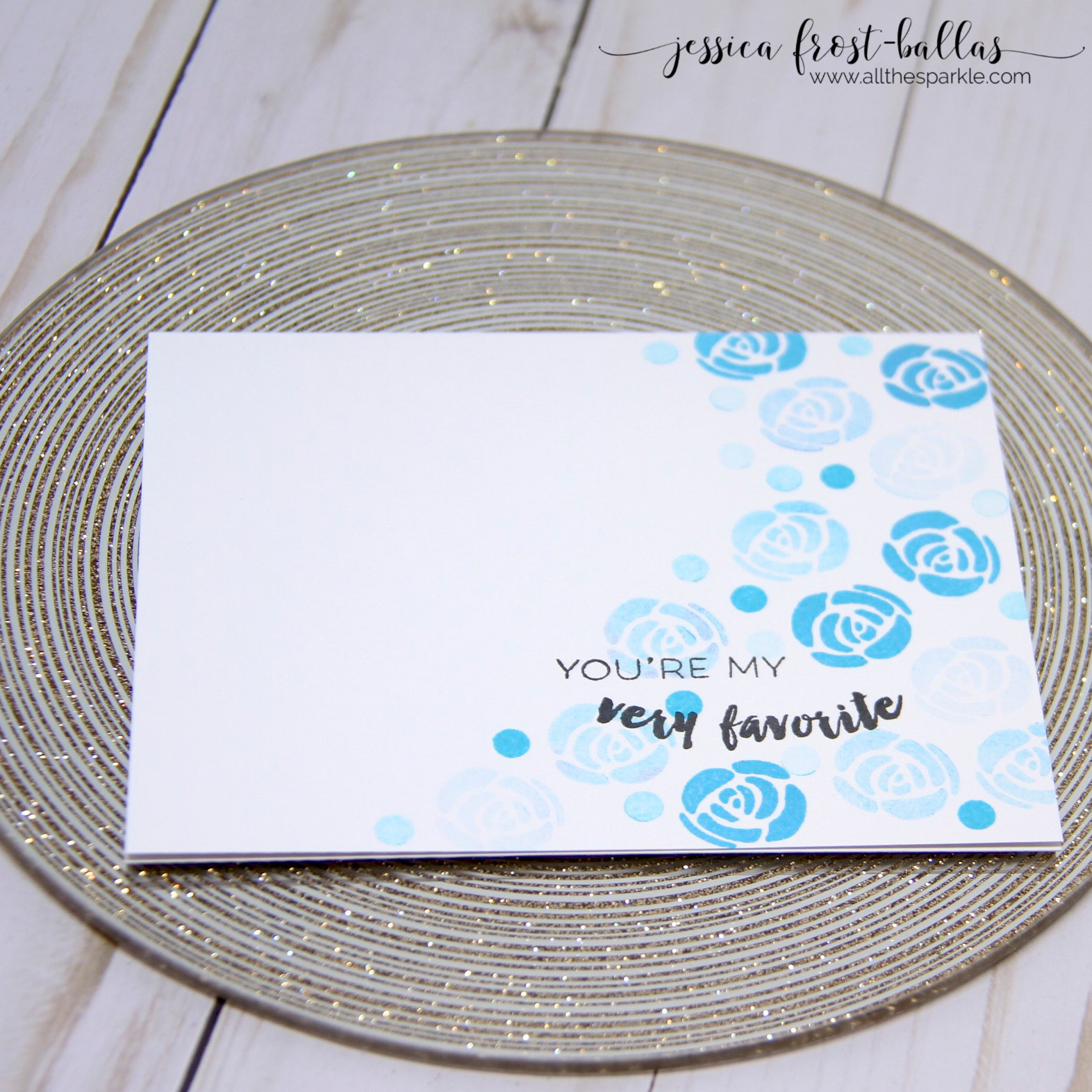 And finally, another fun example of generation stamping. The rose and dots are stamped once, twice, and three times without reinking for that ombre effect! Honestly, I almost can’t believe how well the ink shows up with a third stamping!!