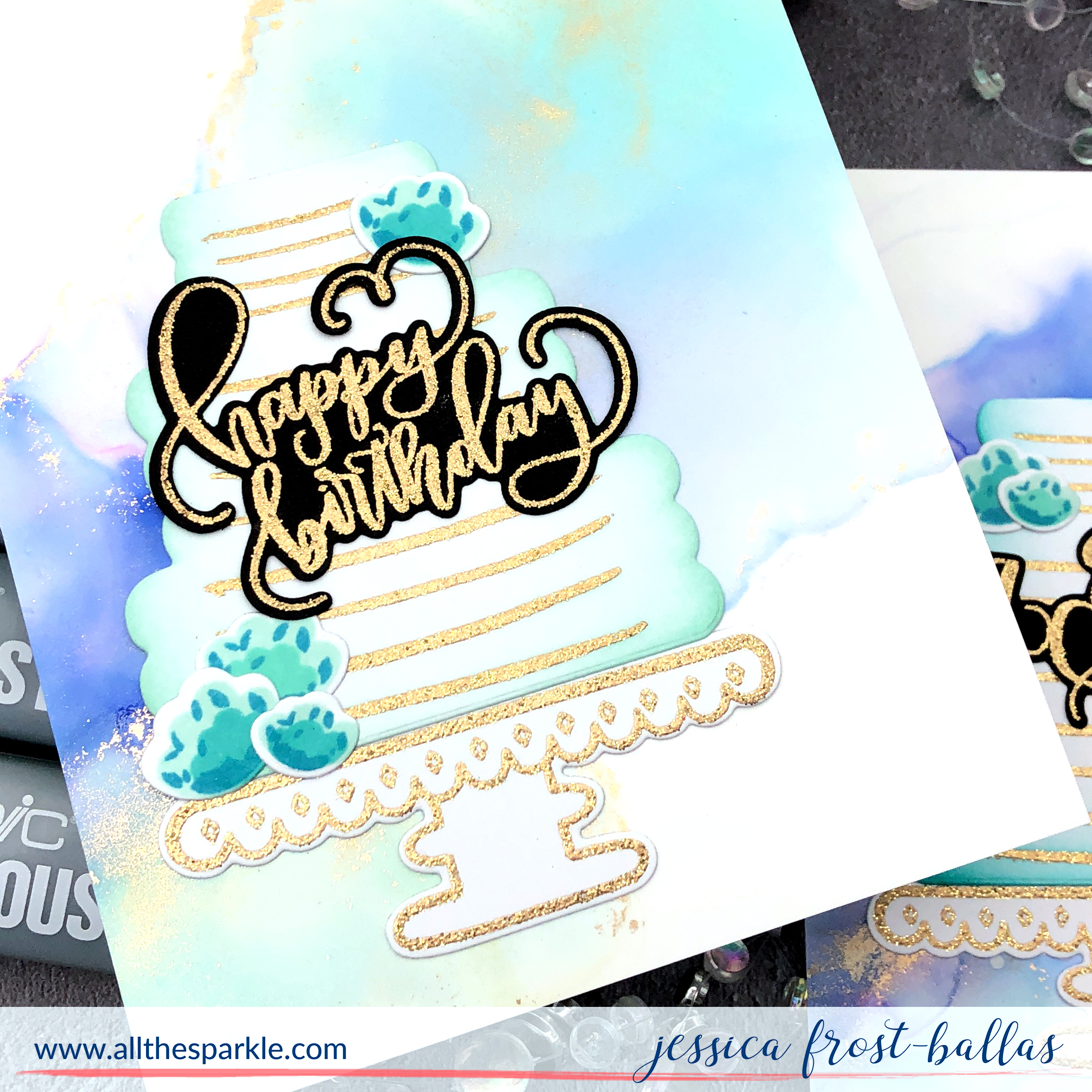I trimmed down the alcohol ink card panels and then arranged all my elements on top before adherinf them with a mix of ATG adhesive and connect glue! And that’s it! I love how one design and layout can create cards for a variety of occasions! And I really love how you can pair alcohol inks and dye inks to create designs that look like they were meant to be together! 🙂