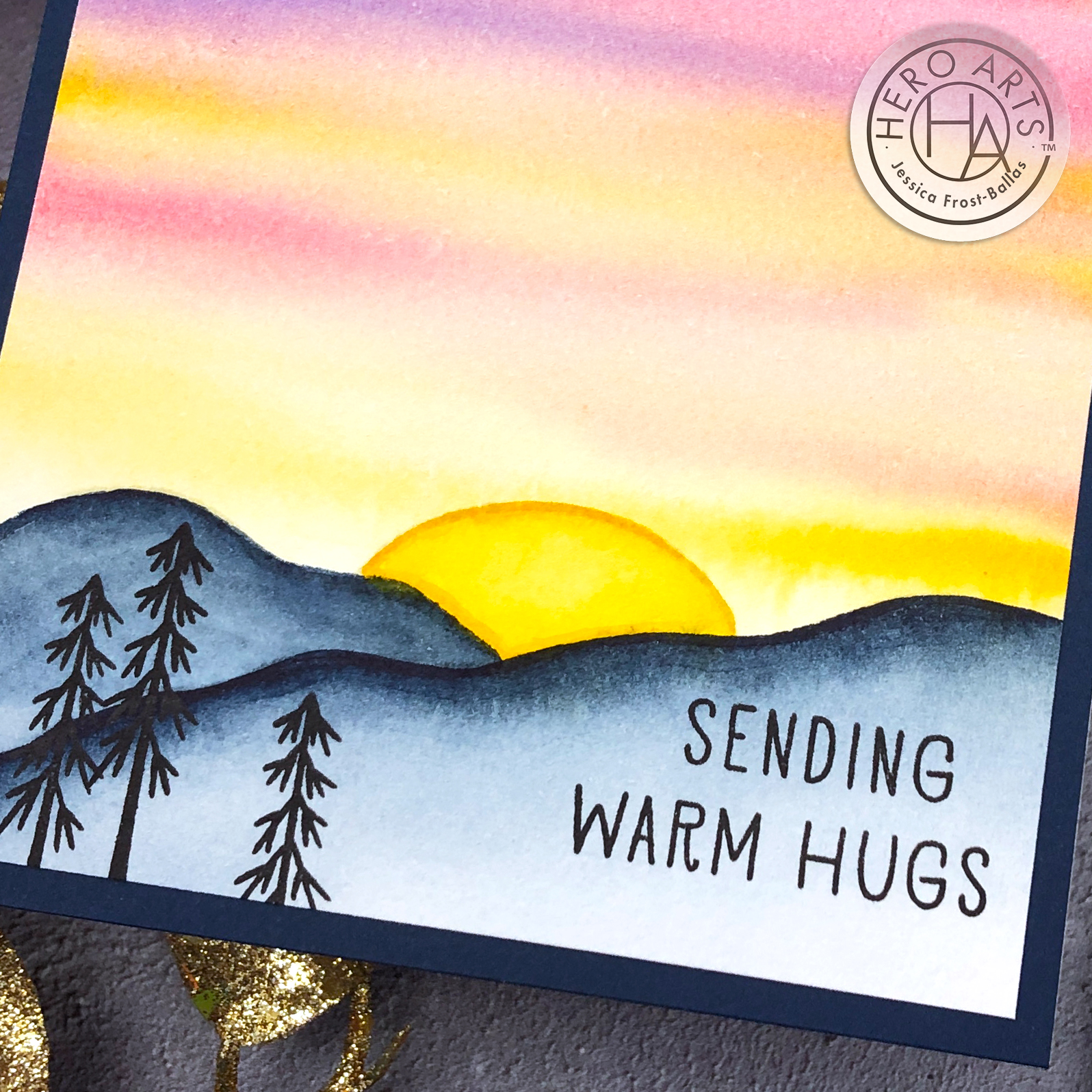 Good morning! I’m back with another add-on from the September My Monthly Hero kit from Hero Arts! We got a little spooky yesterday so today we’re going back to cheerful autumn cards! The Happy Autumn Forest is such a cute set and it reminds me SO much of Bob Ross paintings that I decided to do my own watercolor spin on it! 🙂