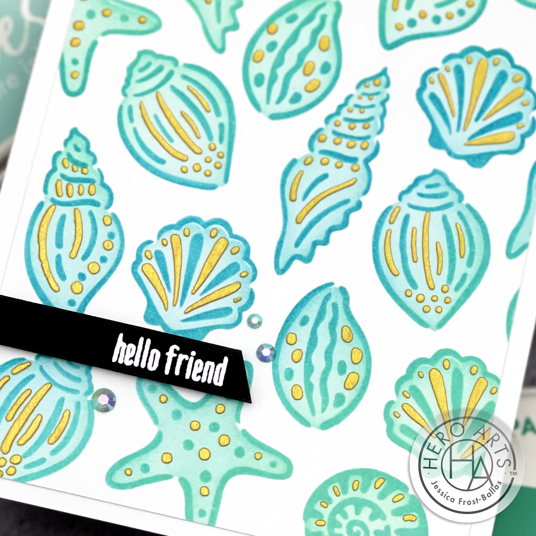 love the sea shell stenciled card. the gold accents are my favorite part:)