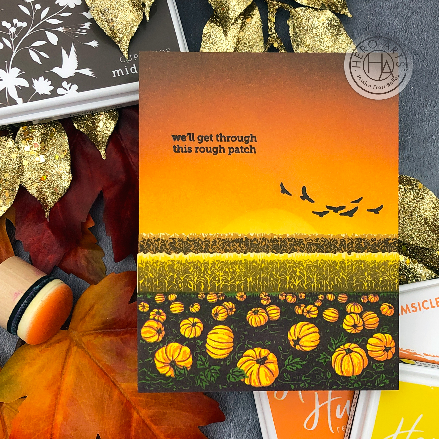 Good morning! This month Hero Arts is changing things up a bit for our My Monthly Hero kit previews and we’ll be sharing even more kit inspiration on our own blogs all weekend long! And just a quick reminder, the kit will launch on Tuesday, September 8th this month (instead of Monday) due to the holiday. I’m kicking things off with this card using inks included with the kit and the FANTASTIC new autumn heroscape! 🙂