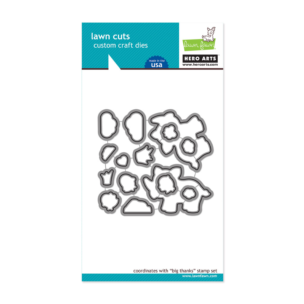 Hello!! We are honored to be partnering with our good friends over at Lawn Fawn to release this adorable stamp set, Big Thanks, as part of our ongoing 45th Anniversary celebration! Big Thanks is available exclusively at Hero Arts and coordinating dies are also available!