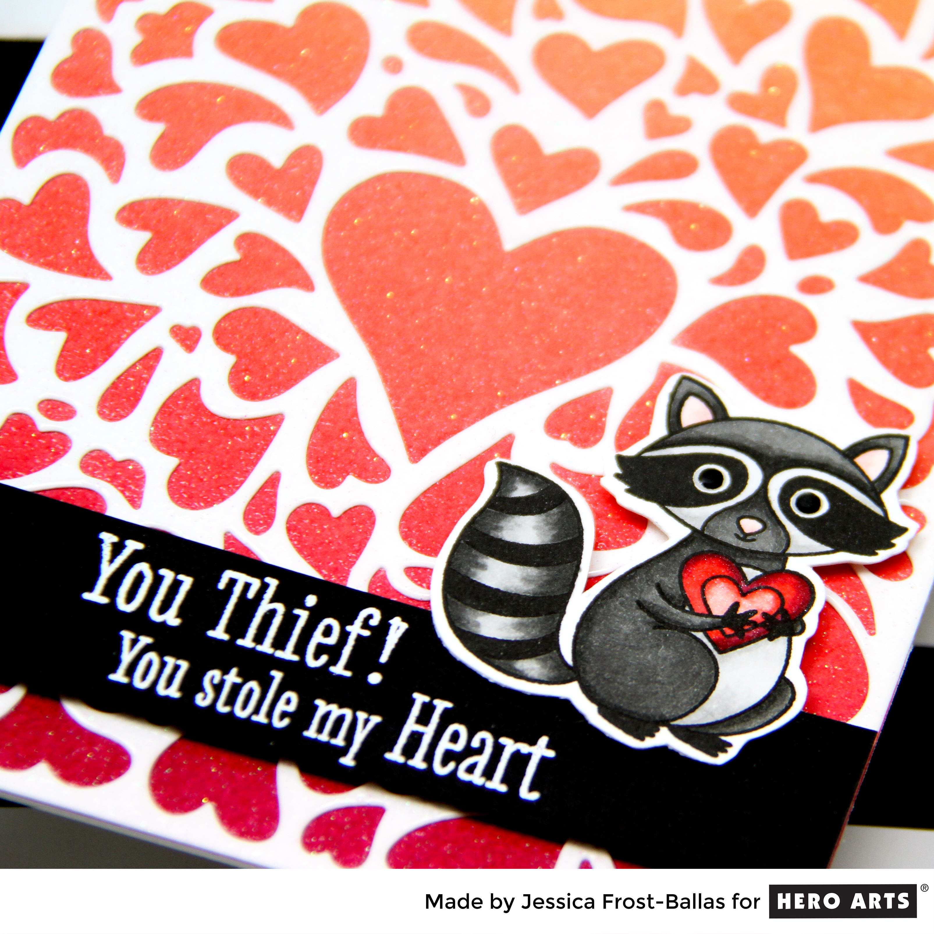 Gotta love that darling little raccoon!!! Such a cute card! And that modern heart background is just gorgeous!!! Thanks for sharing!
