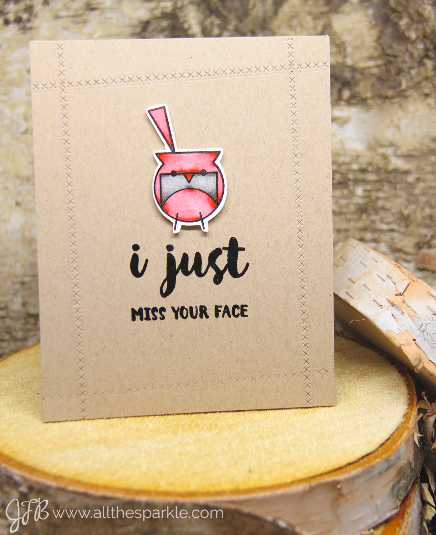 I used the Lawn Fawn Stitched Borders embossing die to offset emboss the edges of a piece of kraft cardstock. I stamped the sentiment from WPlus9’s That Is All stamp set in versafine and embossed it with clear powder. I added my cardinal and popped him up on the card front with foam mounting tape! Clean and simple and CUTE! 🙂