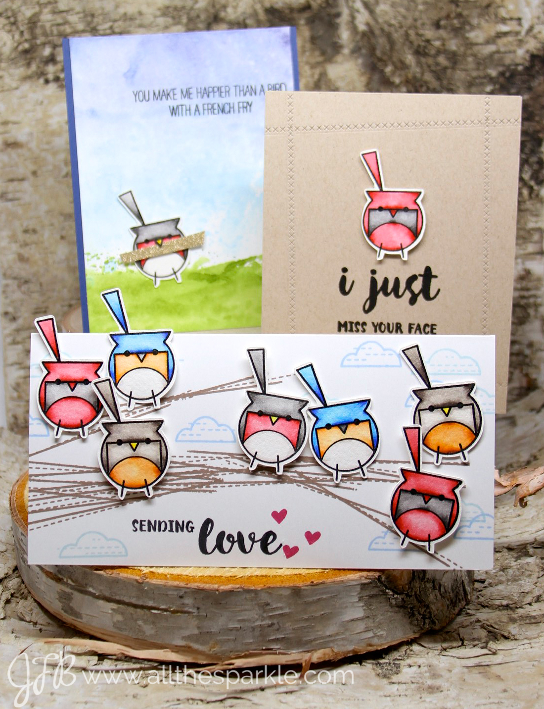 Good morning! Like many of you, I’ve been eagerly anticipating all of the new stamps and products that were previewed at CHA in early January. However, when I saw the Dawn Woleslagle’s sneaks of these birds last week I immediately forgot all of those other stamps that I had been so excited about. The Happy Birds stamp set from WPlus9 is SOOO adorable and I couldn’t resist spending my afternoon playing with them!