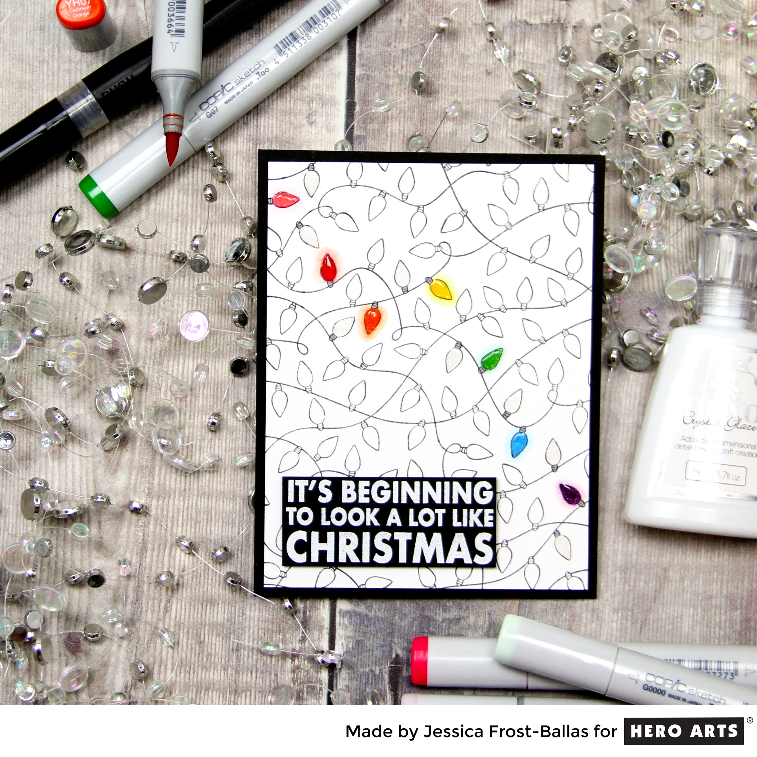 Jessica these little colored lights are SO fantastic… the little halo of color actually makes them look as if they are lighted up!! Fabulous card!