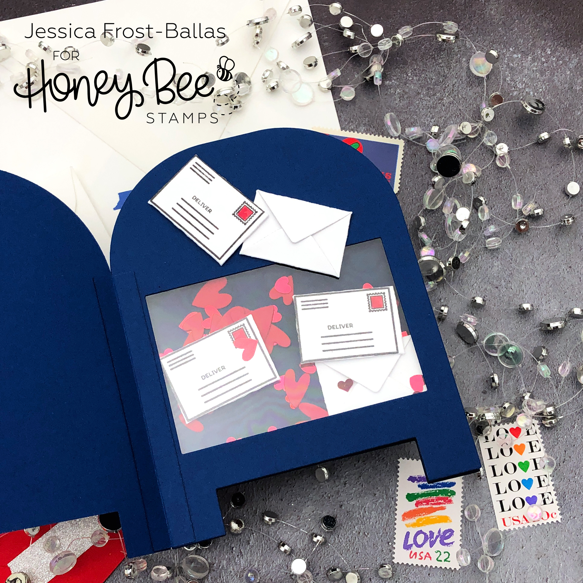 Good morning! Today I’m excited to be a stop on the hop for the Bee Mine Valentine’s Release from Honey Bee Stamps! I created an interactive card with a hidden shaker using the clever new Post Box Card Base dies! You can watch a quick video below or over at my YouTube channel: