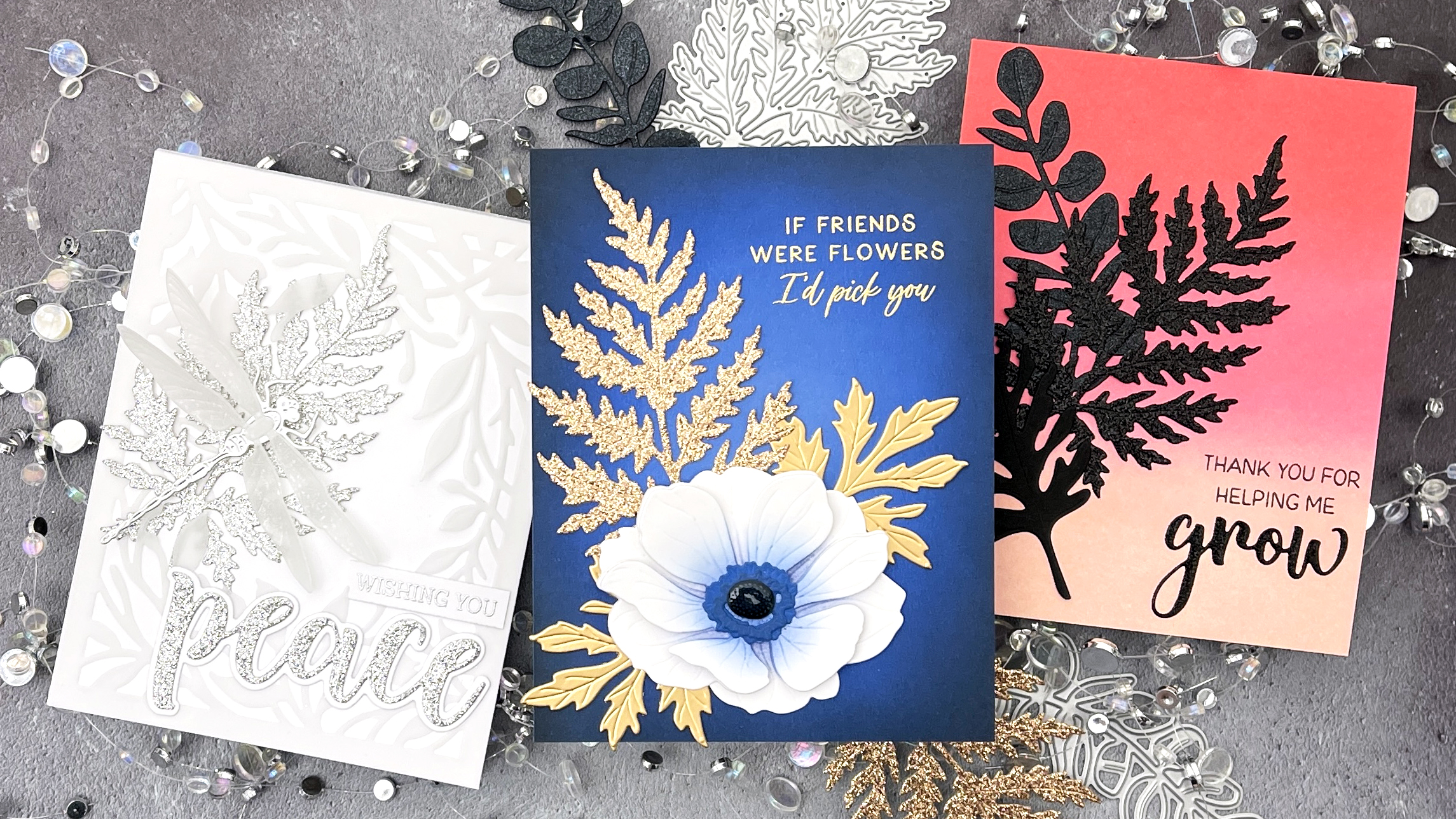 I paired various metallic cardstocks, glitter cardstocks, vellum, ink blending, and some older Honey Bee Stamps sets to create my card trio. I love how you can get such different looks with the same die set! I hope you’ll check out the video for all the details and then head over and shop the new release!