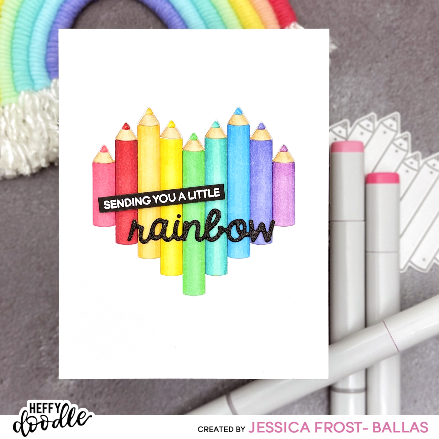Today I used the fun Heart Pencil dies and a little borrowing of other sentiments to create a clean and simple rainbow card!