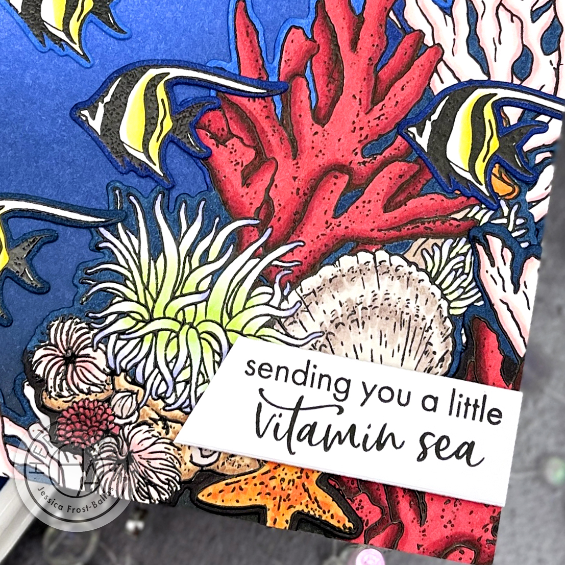 Fantastic card or should I say fin-tastic? 🙂 I love your coral wreath and vibrant fish. Using two images to create a fuller looking reef helps it look a bit more realistic and I love the way you colored all the edges of the die cuts instead of leaving them white. Makes your entire seen flow together better (pun intended). Thanks for sharing and inspiring!