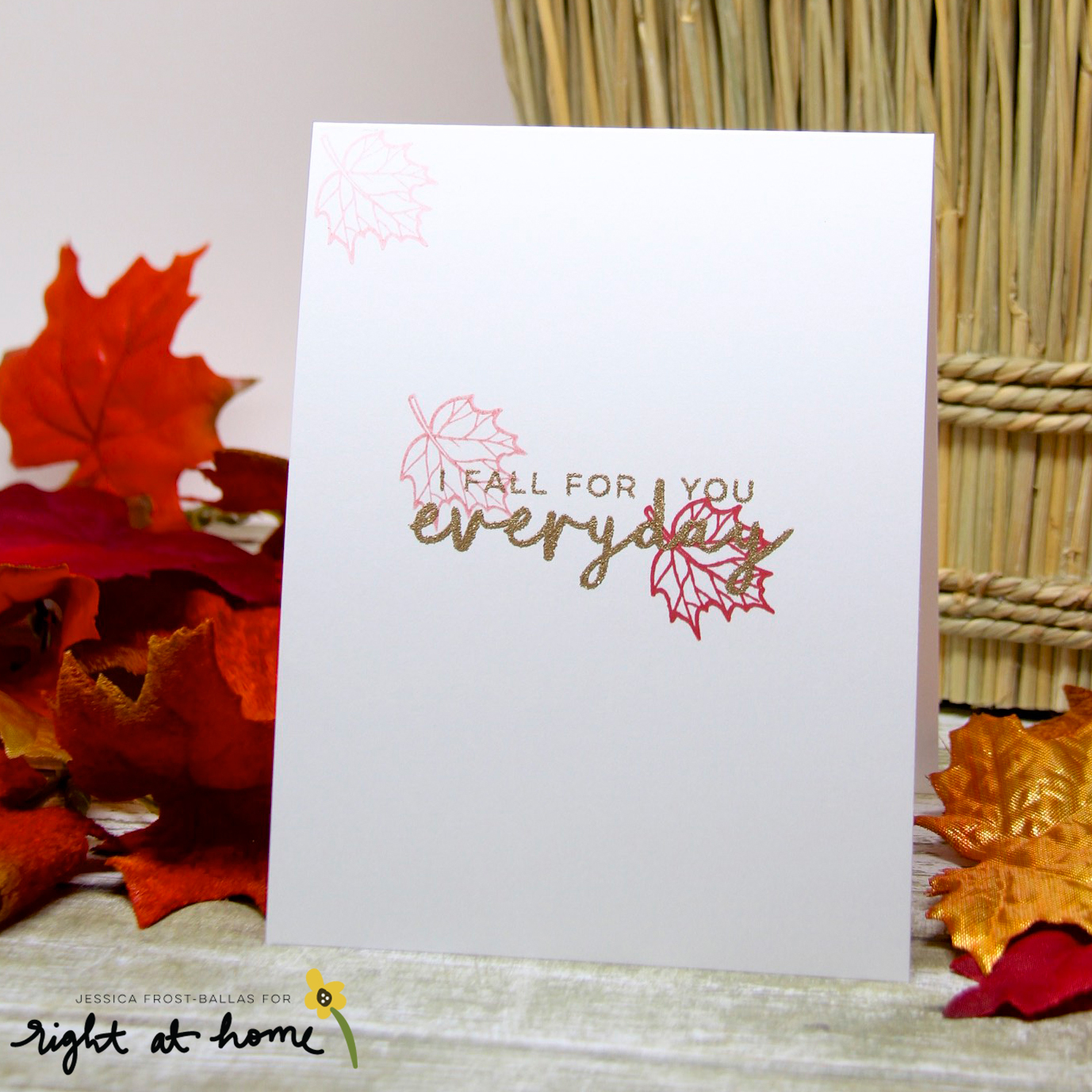 Masculine cards are hard for me but I think this is the perfect balance of a simple design but a little color and of course, a little sparkle! I stamped the maple leaf from Grateful Heart once in the middle of my card and then immediately restamped it two more times resulting in lighter impressions moving up towards the top corner of my card. Then I stamped the sentiment from Grateful Heart in versamark and heat-embossed it with gold tinsel embossing powder.