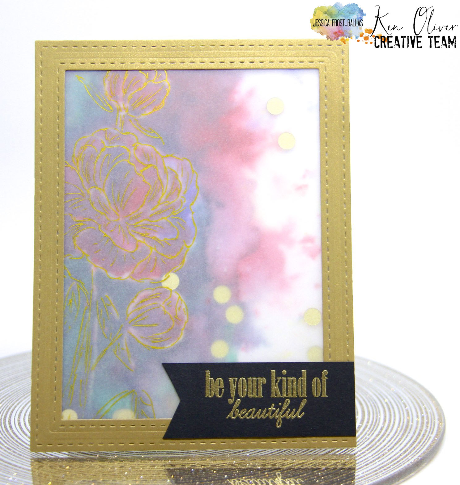 Good morning! I’m really excited to be here with my first post as a member of the Ken Oliver Creative Team! I’ve been a huge fan of the Color Burst powders for some time now and use them frequently in splattered card backgrounds. But for my first post as a member of the creative team I wanted to try something a little out of my comfort zone!