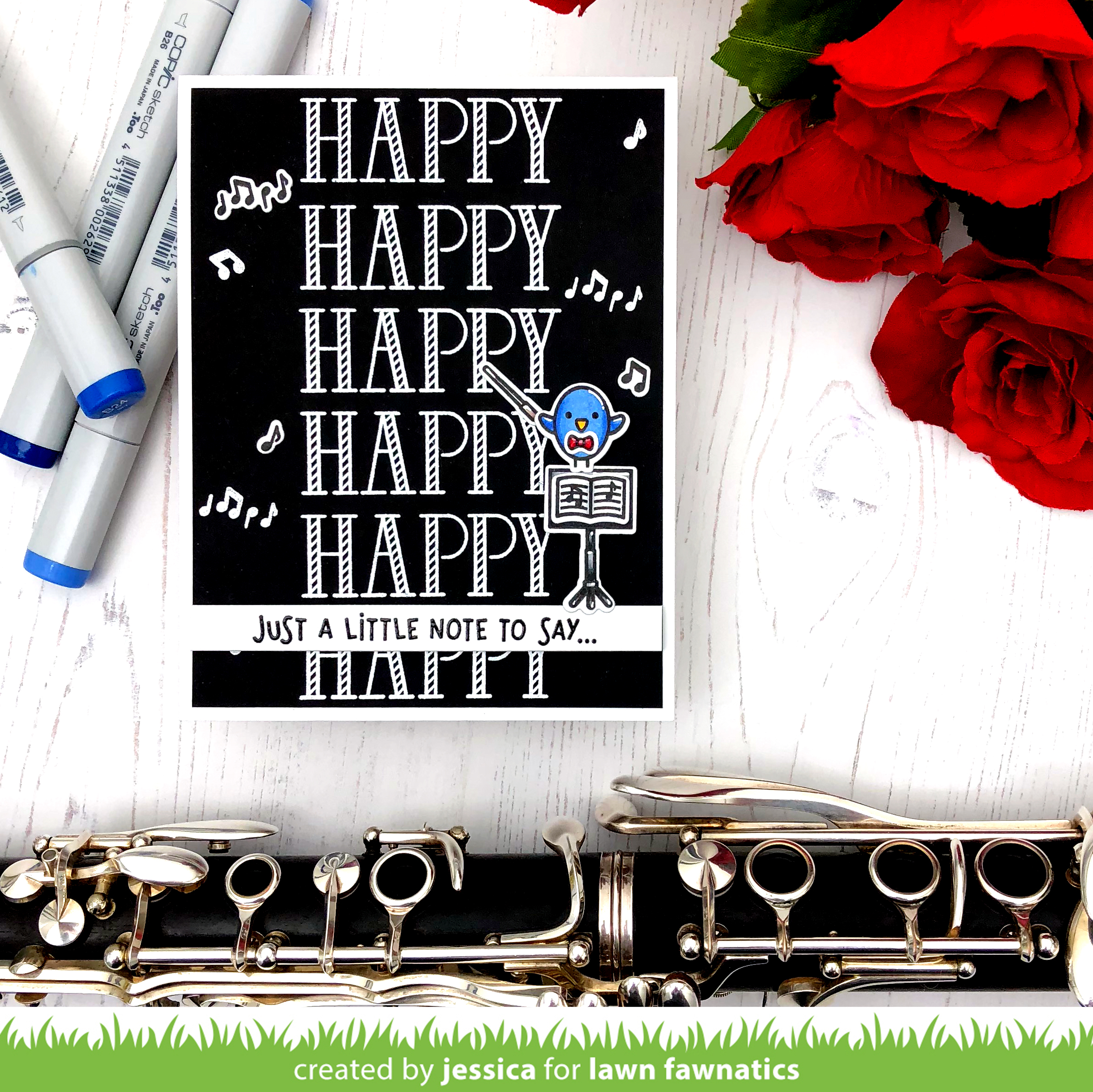 Good morning!! It’s time for a new Lawn Fawnatics challenge and we’re challenging you to create cards for guys!! My card might not seem overly masculine but it’s perfect for my band director husband! 😉