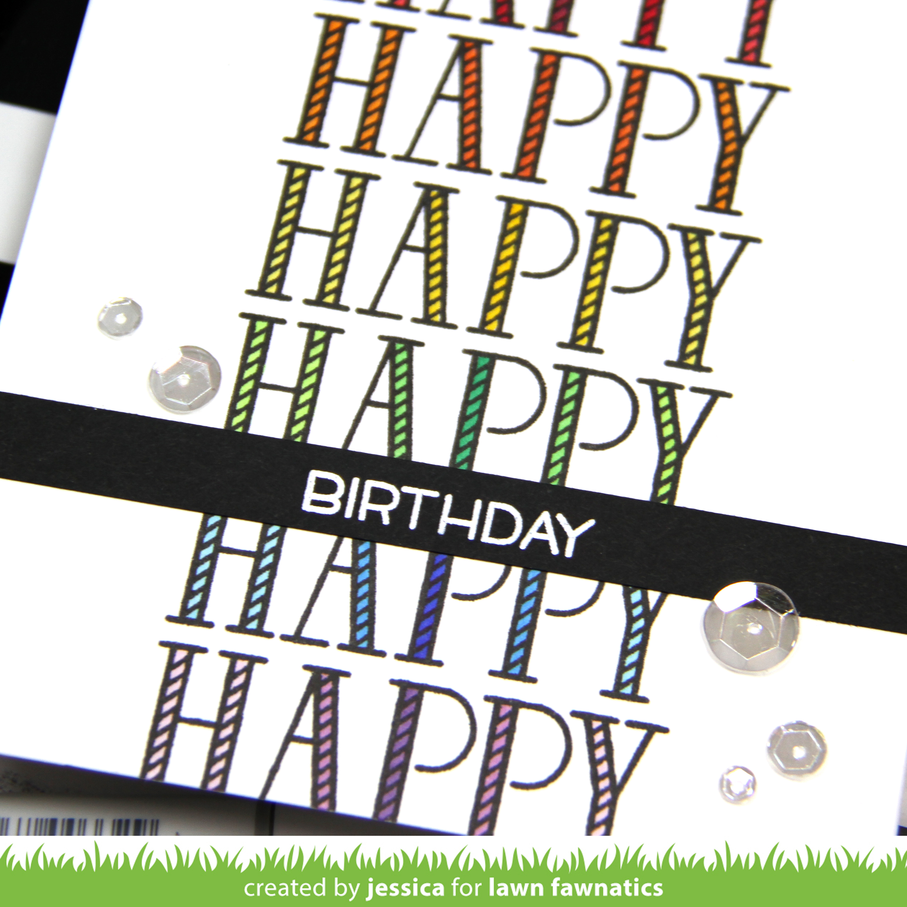 Good morning! It’s time for a new Lawn Fawnatics challenge and we’re challenging you to create a card using black, white, and bright colors! I was having so much fun that I made two!