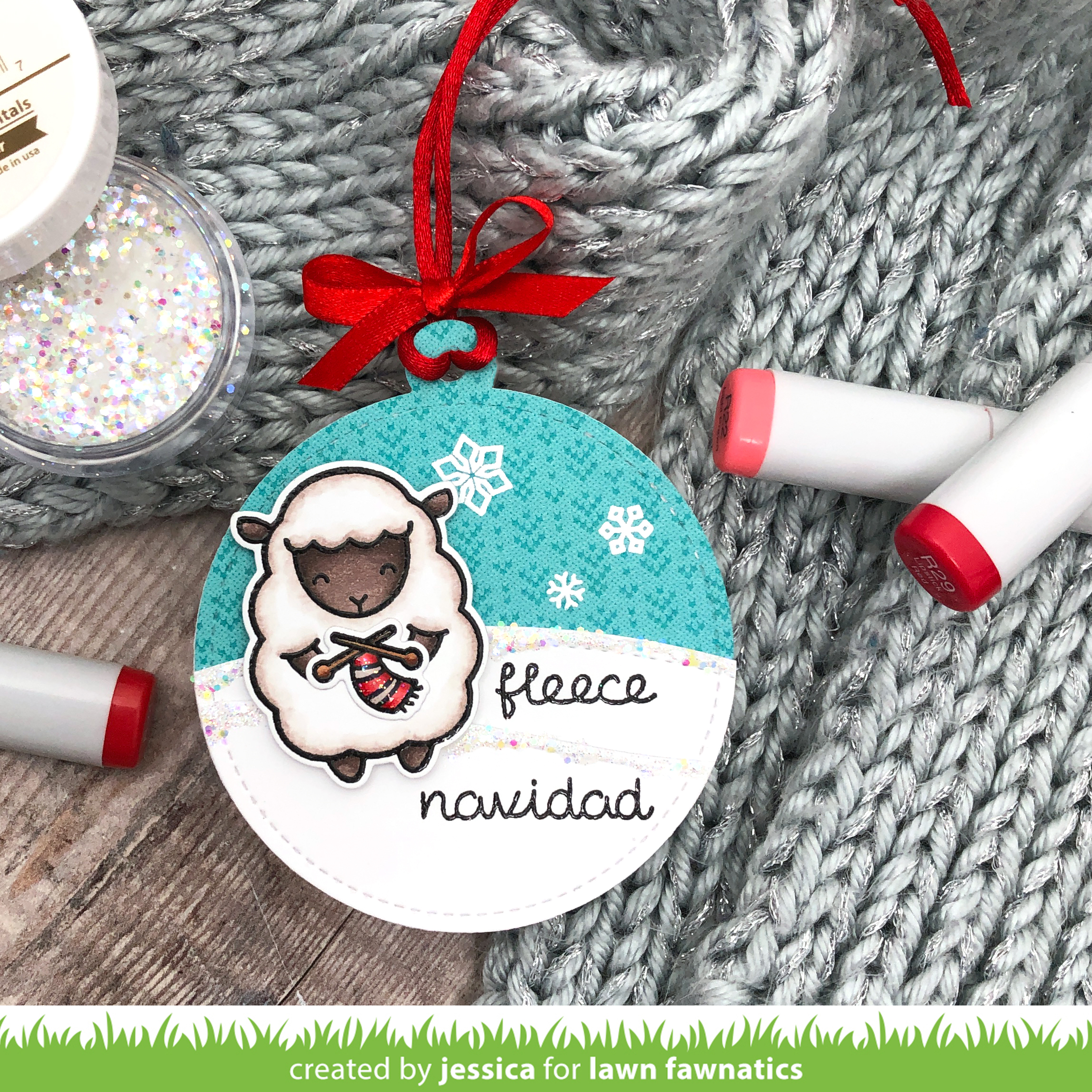Good morning!! It’s time for a new Lawn Fawnatics challenge and we want you to create a card celebrating a winter holiday! I decided to create a cute tag using one of the punny sheep from Baaah Humbug!