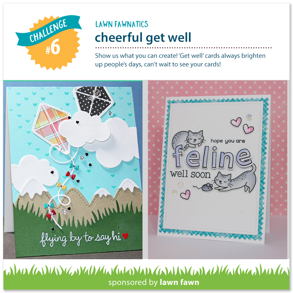 Good morning! It’s time for a new Lawn Fawnatics challenge and we’re challenging you to create a cheerful get well card! I combined a bunch of older Lawn Fawn sets to create a punny get well!
