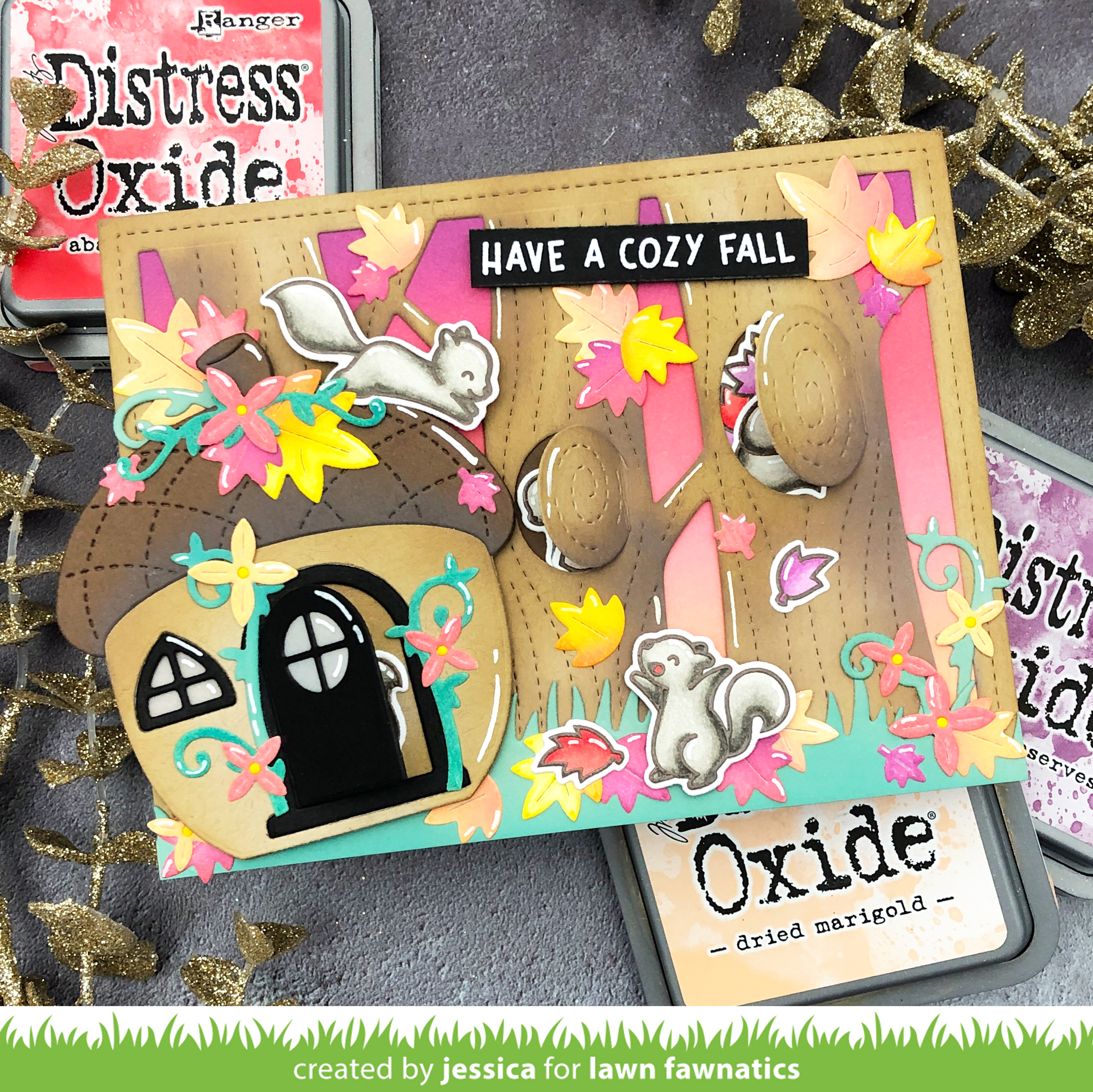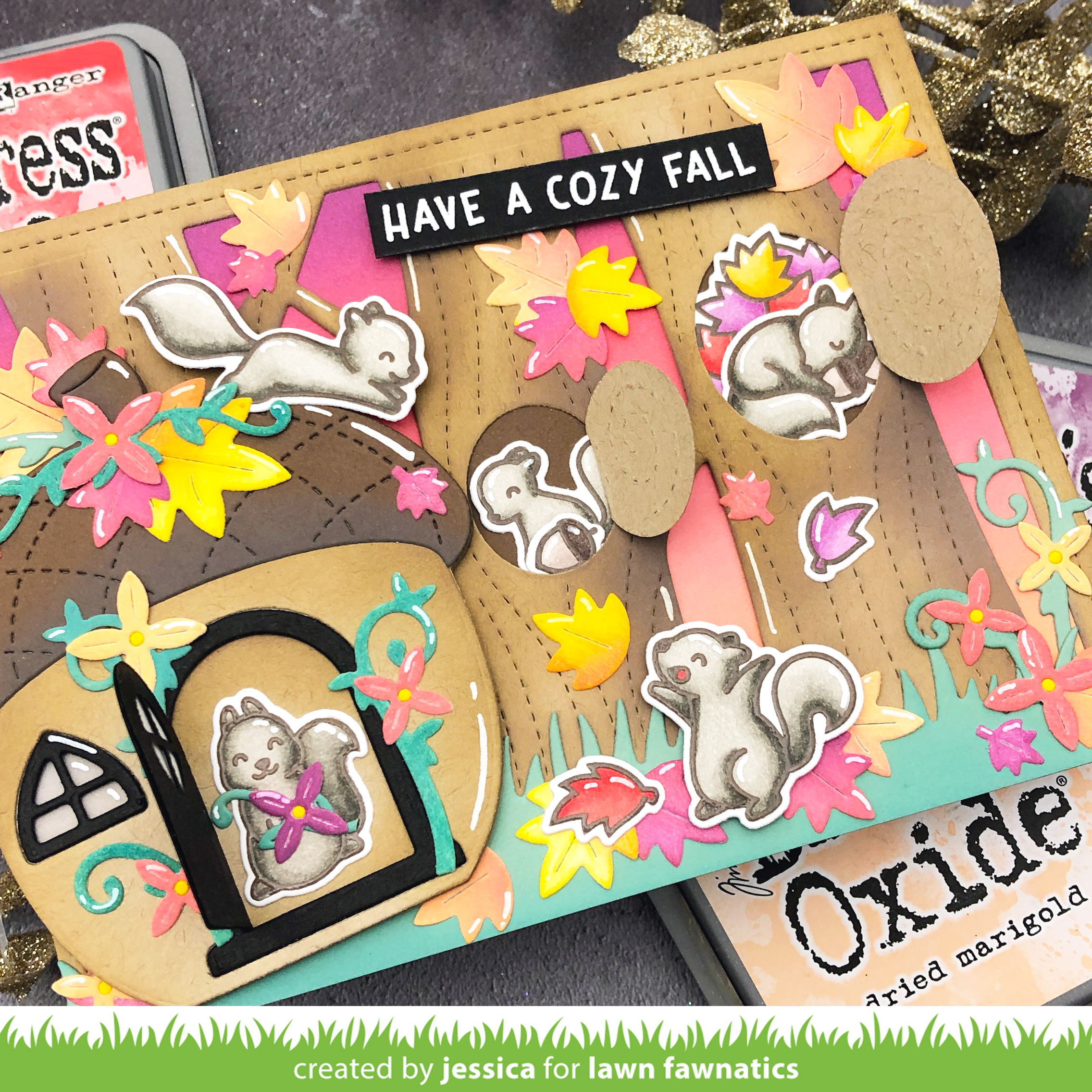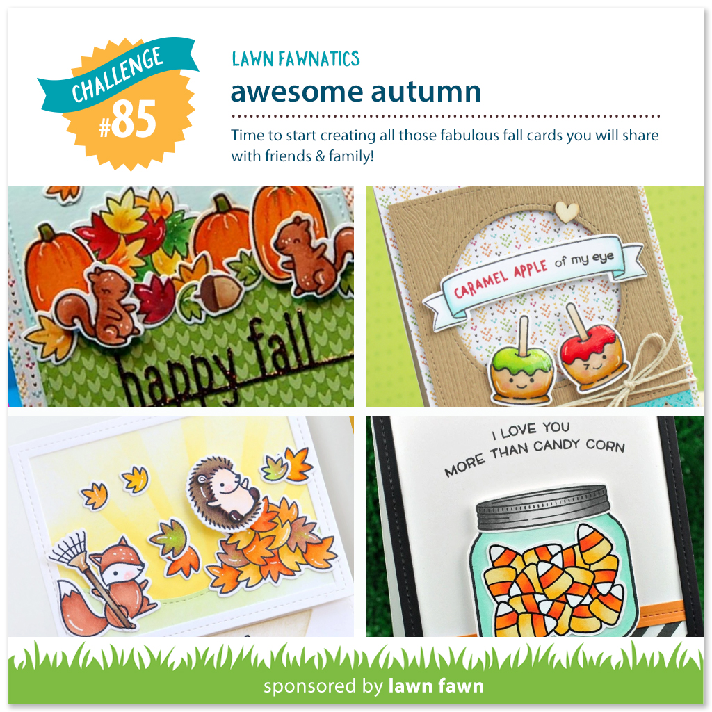 The Fall Release from Lawn Fawn is here and it is jam-packed with fantastic products for this challenge! I combined several of them to put together this autumn-inspired card!