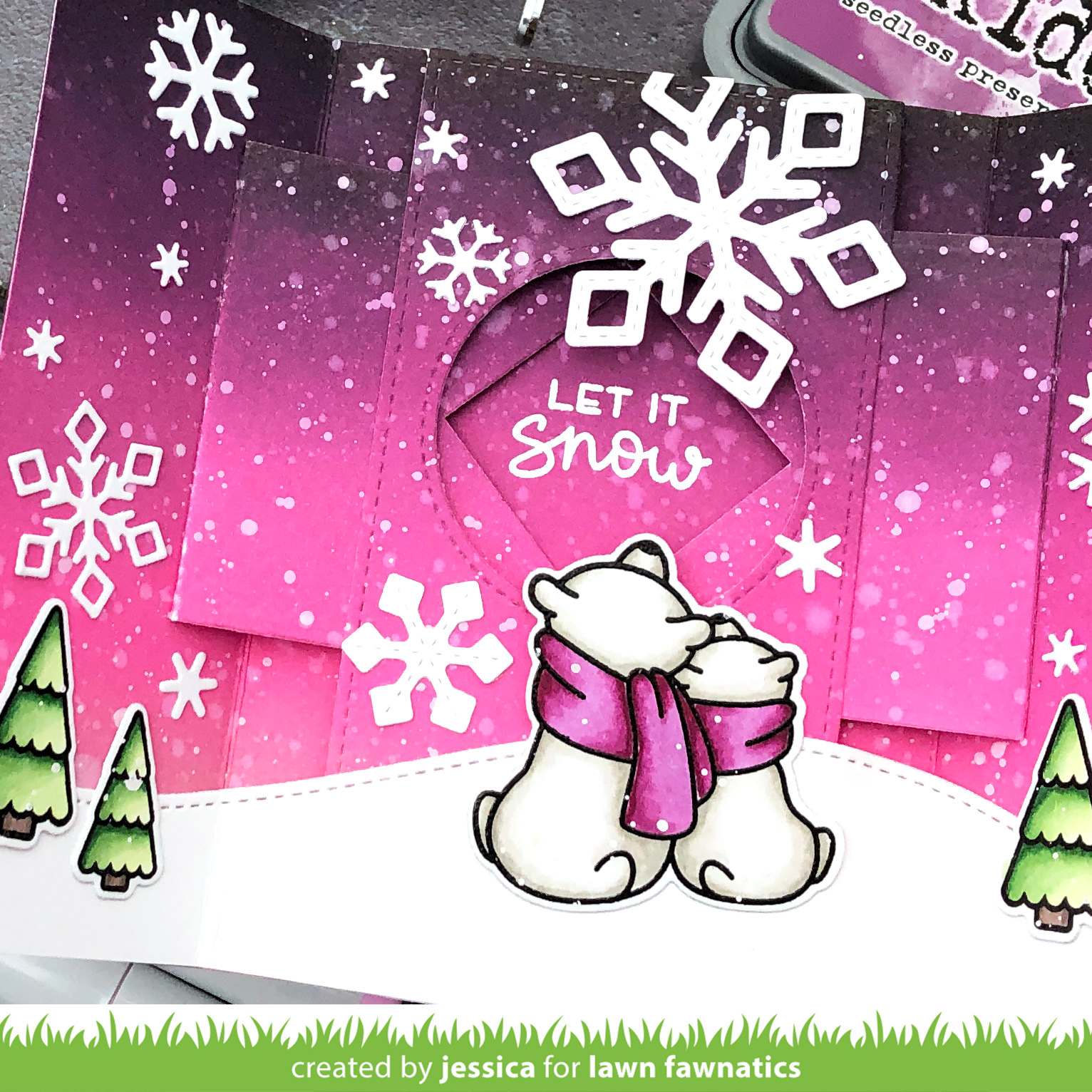 Good morning! It’s time for a new Lawn Fawnatics challenge and we have a fun sketch challenge! I decided to interpret the sketch in a slightly different way and created an ink blended shutter card!