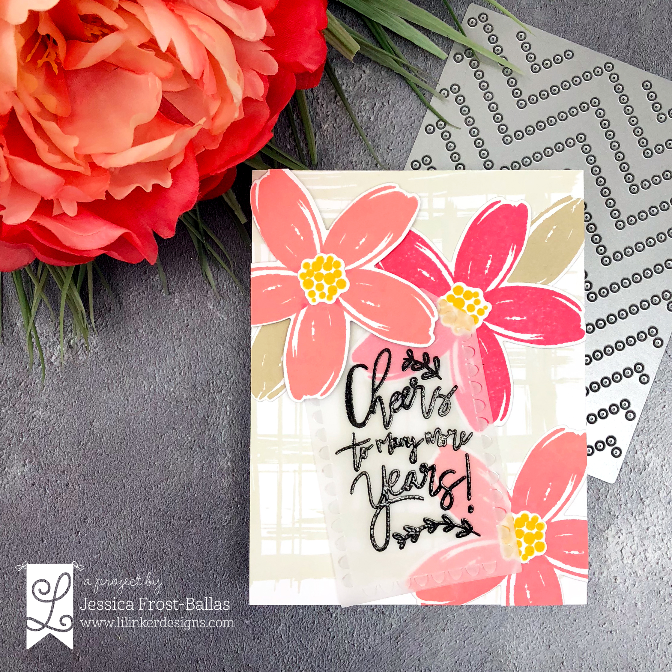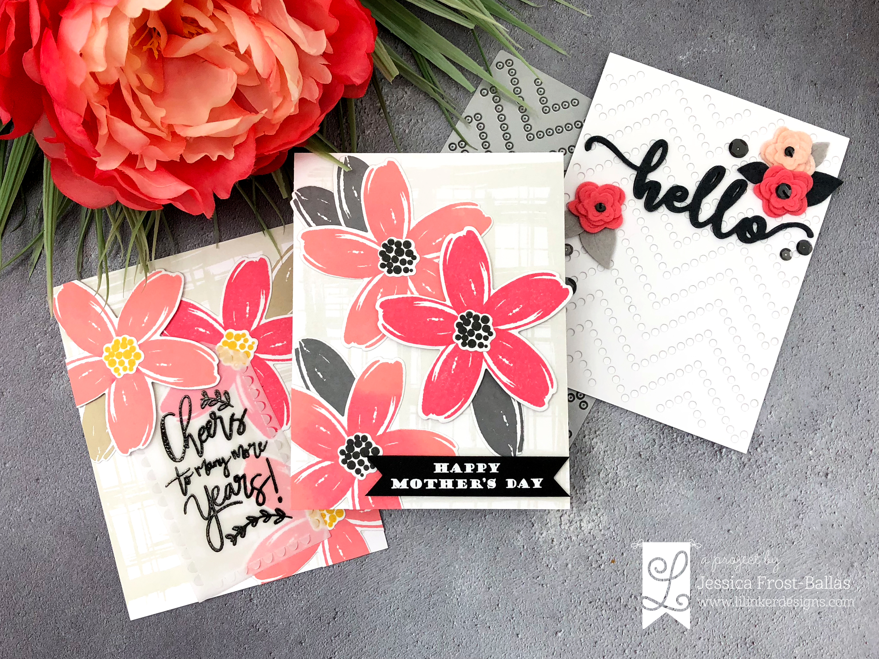 Jessica, I love your cards! The background, the flowers, the layout, the felt hello…..all perfectly creative! Thank you!