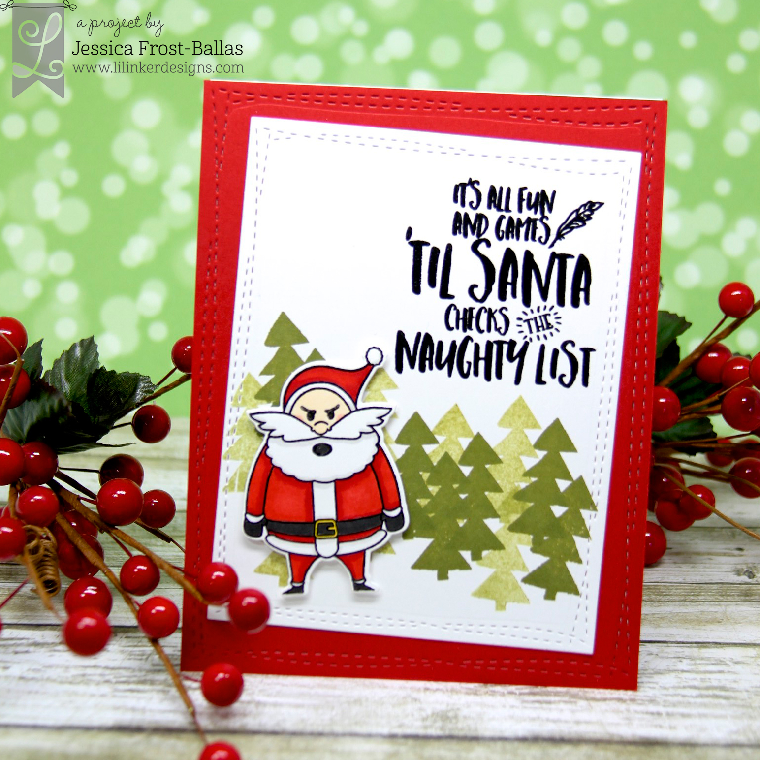 Good morning and welcome to the final day of the October release for Lil’ Inker Designs! We’ve introduced a bunch of adorable holiday stamps and dies over the last three days and they’re all available now! Don’t forget to comment for a chance to win the entire October release!! Today I’m sharing three cards featuring the Tis’ the Season stamps, All the Christmas You’ll Ever Need stamps, Moody Santa stamps, Rustic Christmas stamps, Merry Christmas border die, and the Merry Christmas Word die!
