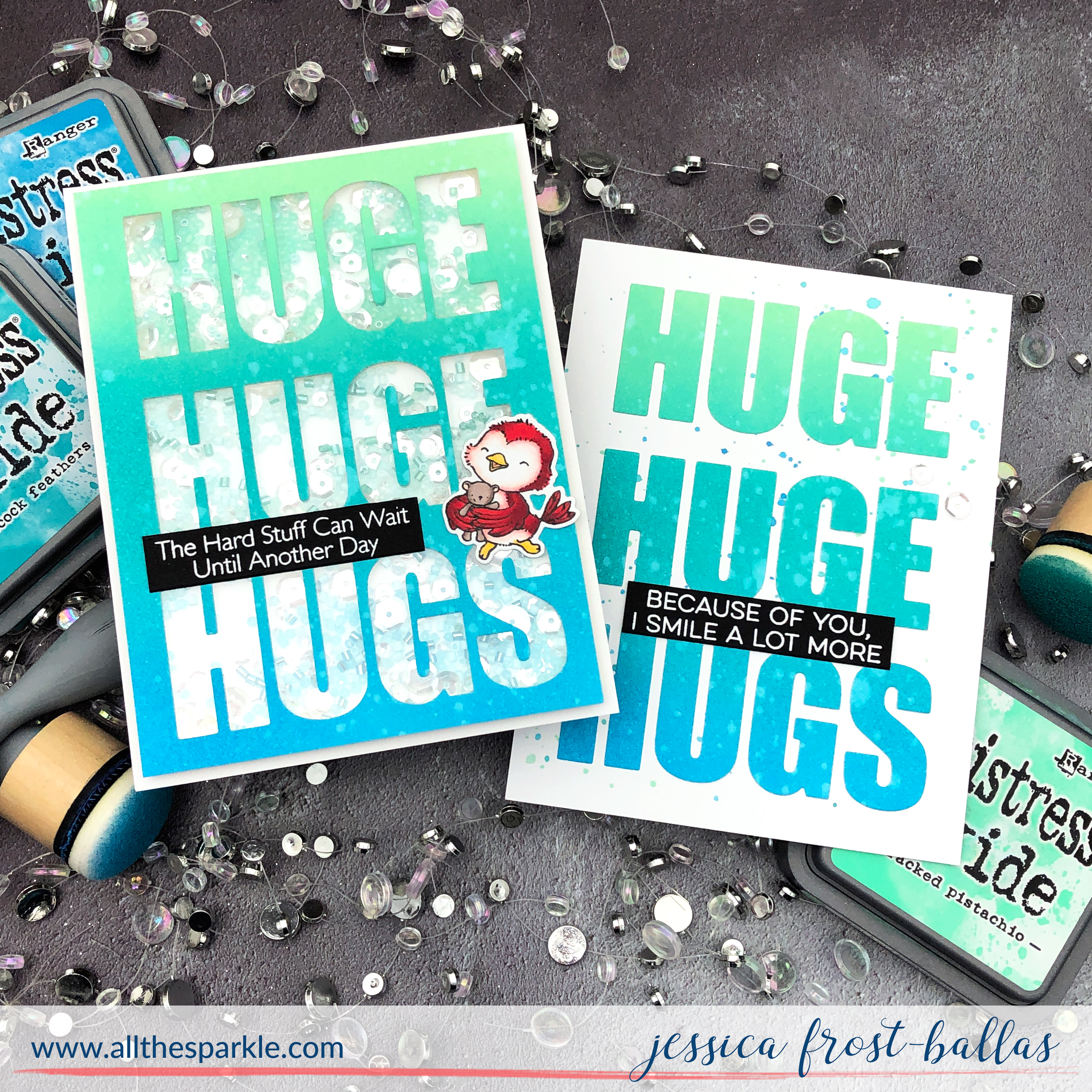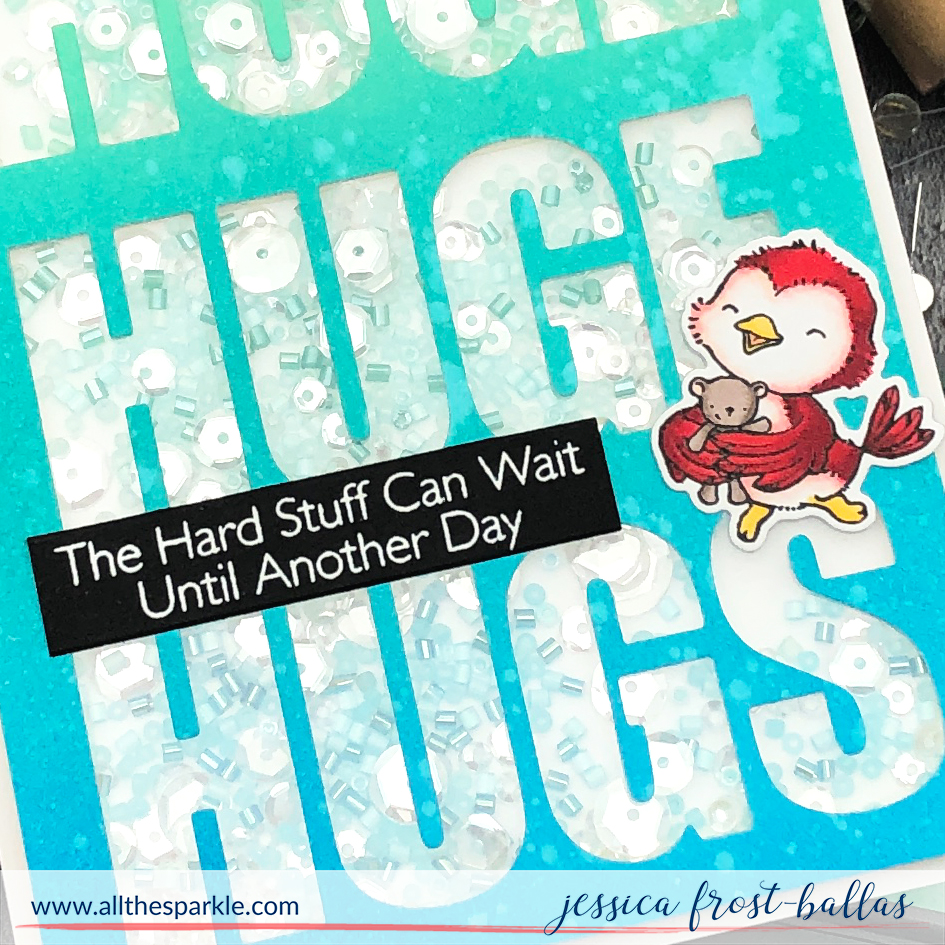 I just love the Huge Hugs die and thought it would be perfect for a shaker card! And even better, I was able to get two cards from one die!